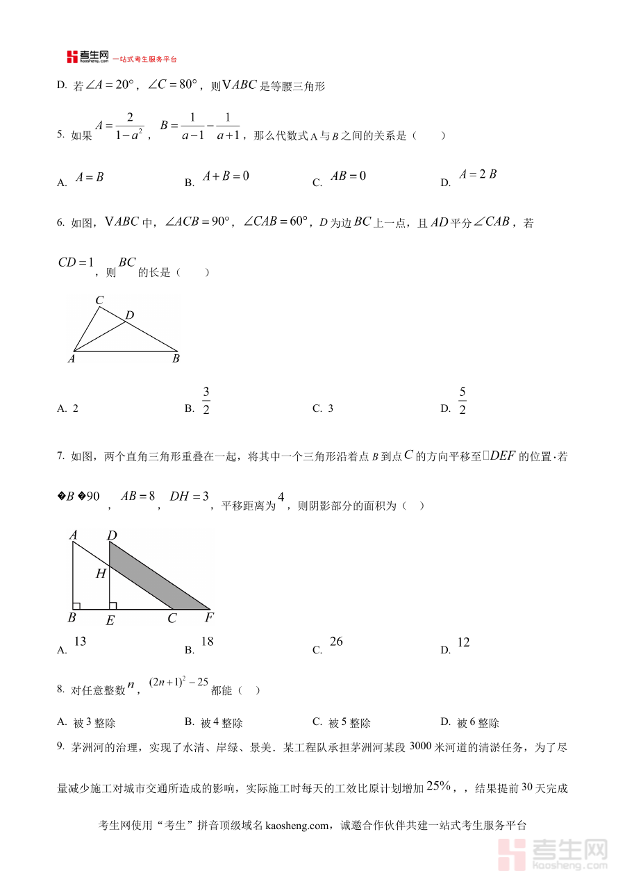 此资料主要适用于辽宁省沈阳市康平县2024-2025学年八年级学生进行月考备考与日常练习,也可作为该地区数学教师的教学辅助工具使用,原卷版的呈现形式能让使用者直观体验考试流程与题型布局,增强备考的针对性和有效性。