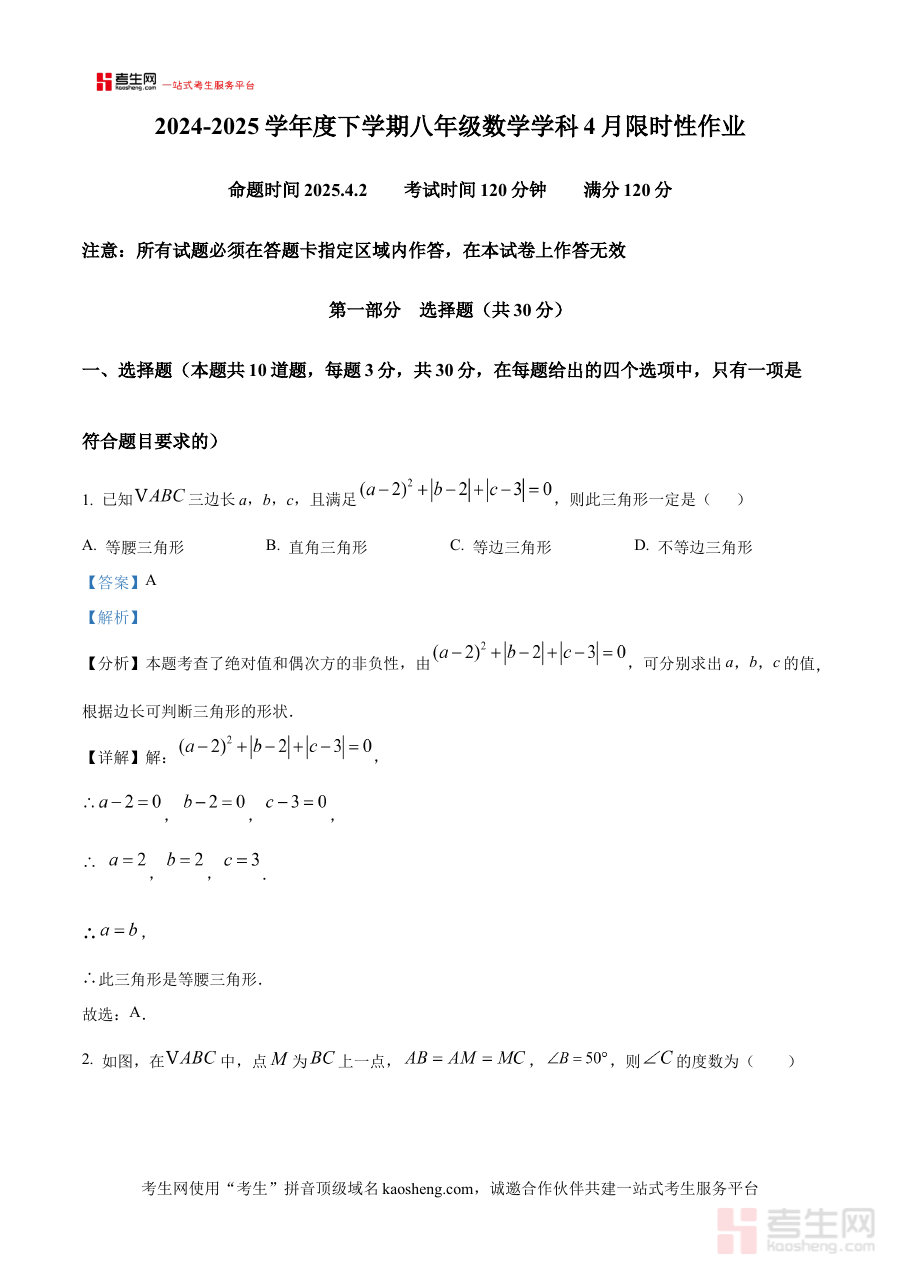 《精品解析:辽宁省沈阳市南昌中学沈抚示范区分校2024--2025学年八年级下学期4月月考数学试卷(解析版)》是针对辽宁省沈阳市南昌中学沈抚示范区分校2024-2025学年八年级下学期4月数学月考的专项备考资料,紧密贴合该校该阶段的教学进度与考试要求,为相关使用者提供精准的考试参考内容。