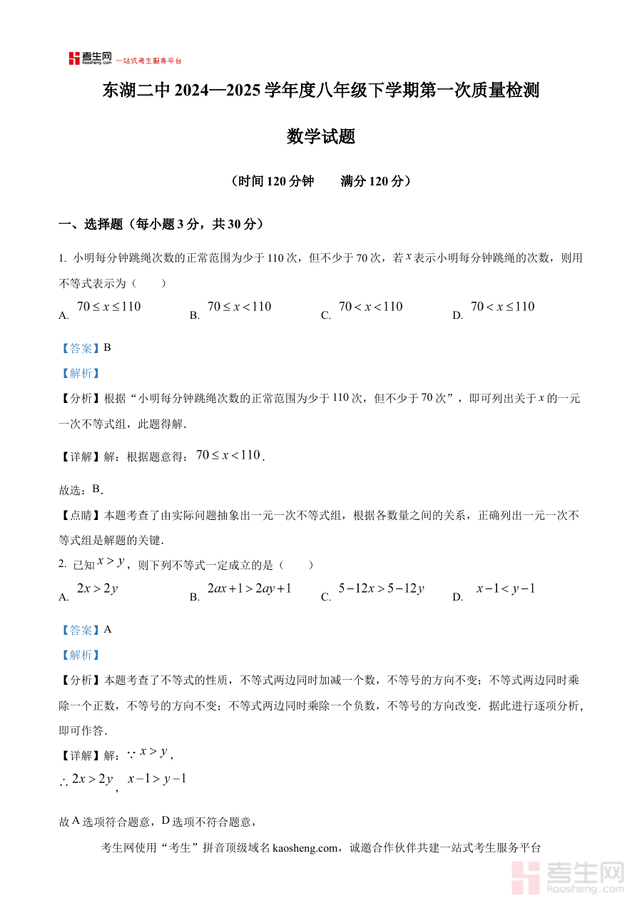 本资料适用于辽宁省沈阳市法库县东湖第二初级中学2024-2025学年八年级学生及关注该校数学教学的教师群体;其解析内容不仅有助于学生巩固阶段所学知识,还能辅助教师了解学生学习动态,为课堂教学与个性化辅导提供参考,具有较高的阶段检测与备考规划价值。