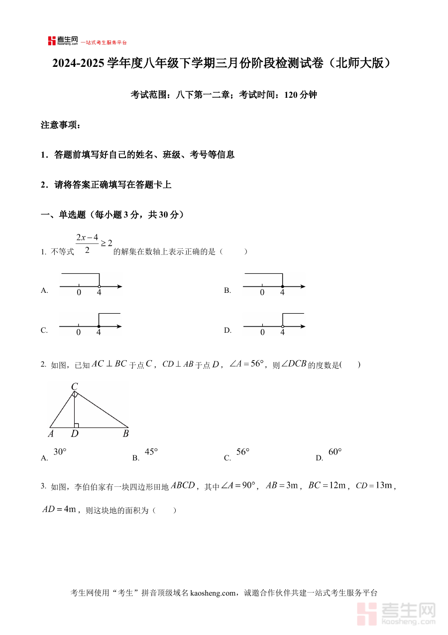 《精品解析:辽宁省沈阳市第46中学2024-2025学年下学期3月月考八年级数学试题(原卷版)》是针对辽宁省沈阳市第46中学2024至2025学年下学期3月开展的八年级数学月考所提供的原始试卷资料。该资料精准对应特定学年下学期的阶段性考试节点,能够为使用者呈现与实际考试完全一致的试卷形式与结构,是贴合该学校八年级学生数学月考备考需求的本地化、针对性资料,为备考活动提供了真实场景下的试卷参考依据。