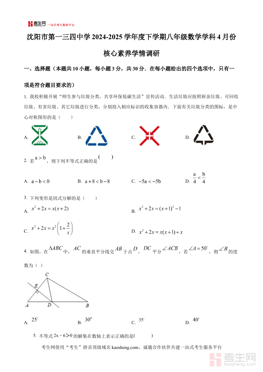 《精品解析:辽宁省沈阳市第一三四中学2024—2025学年八年级下学期4月月考数学试卷(原卷版)》是针对辽宁省沈阳市第一三四中学2024至2025学年八年级下学期4月数学月考设计的备考资料。该资料聚焦特定学年及学期的阶段性考试需求,精准匹配沈阳地区中学数学教学进度与考试要求,为相关群体提供贴合实际的考试内容参考。