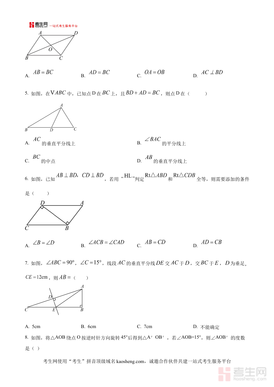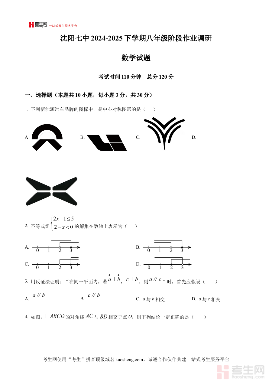 《精品解析:辽宁省沈阳市第七中学2024-2025学年八年级下学期4月数学月考试卷 (原卷版)》是针对辽宁省沈阳市第七中学2024-2025学年八年级下学期4月数学月考的原卷类备考资料,能够真实还原该次月考的试卷原貌,为使用者提供与实际考试完全一致的内容呈现形式,是贴合该阶段数学学习进度与考试要求的重要资料。