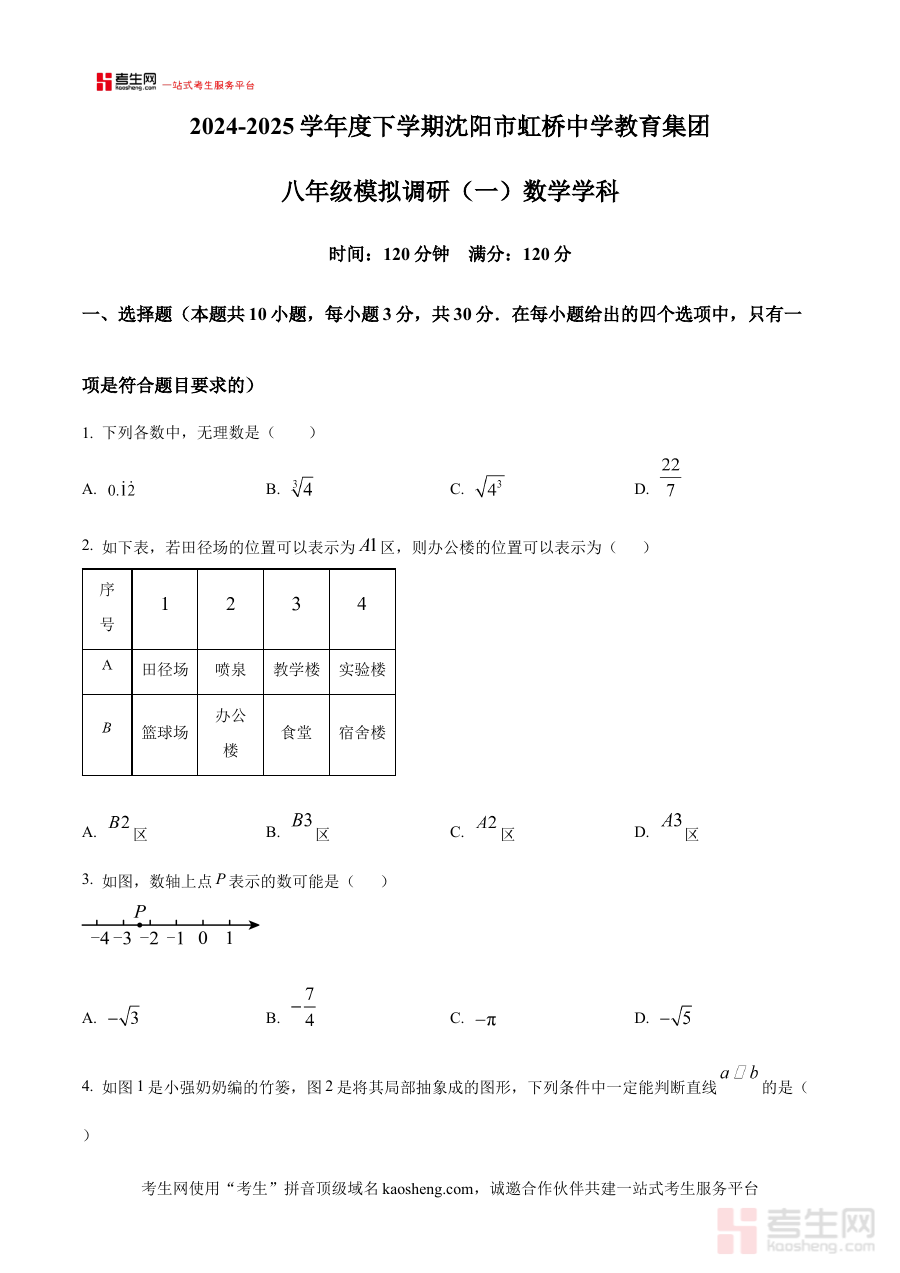 《精品解析:辽宁省沈阳市虹桥教育集团2024-2025学年八年级下学期开学考试数学试题(原卷版)》是针对辽宁省沈阳市虹桥教育集团2024至2025学年八年级下学期开学阶段数学考试的专用备考资料,精准对应沈阳地区虹桥教育集团的特定考试场景,聚焦八年级下学期开学这一关键时间节点,为学生提供贴合本地教学进度与考试要求的原卷形式资料,帮助学生提前熟悉考试环境与流程,确保备考方向与实际考试需求高度契合。