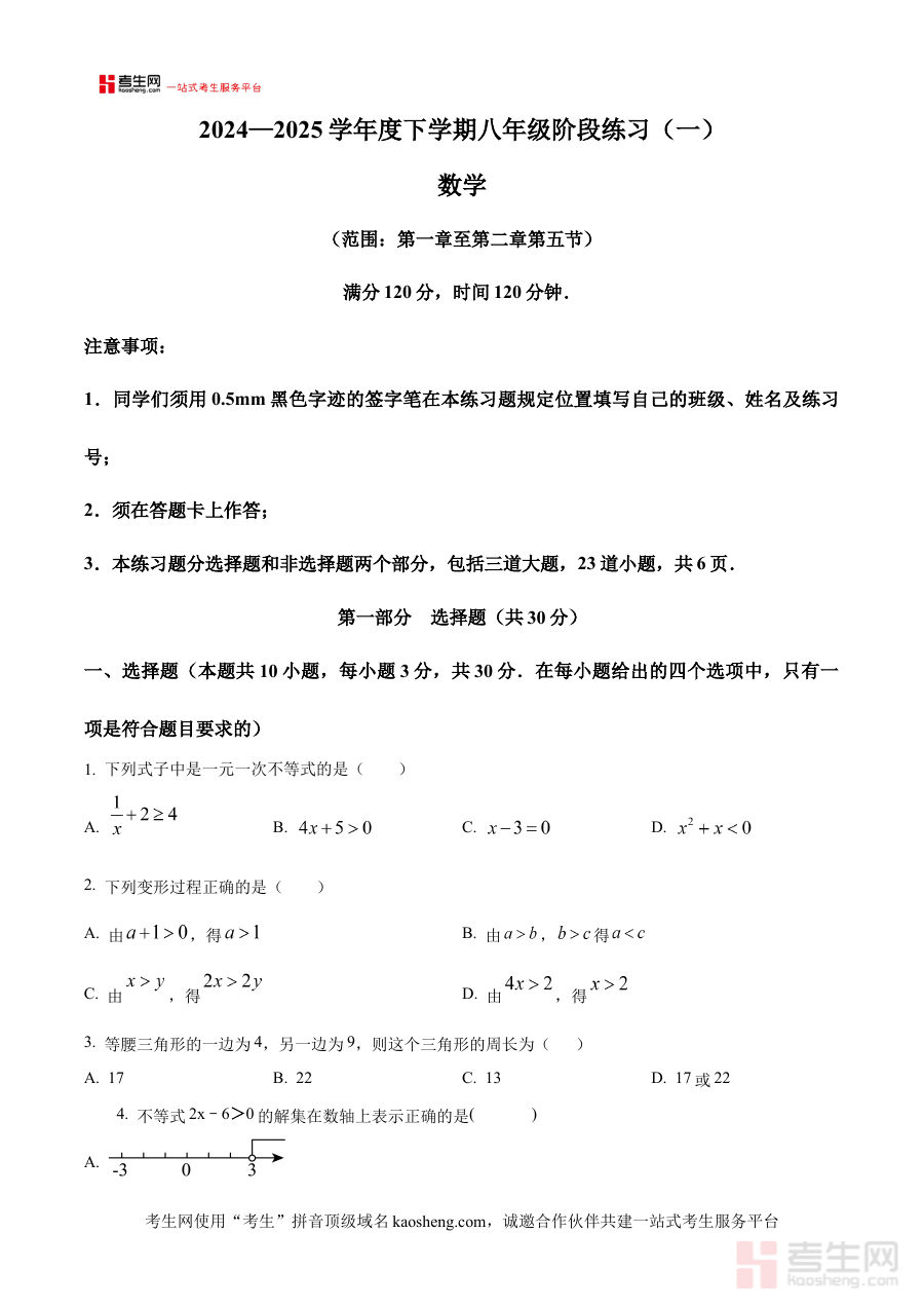《精品解析:辽宁省沈阳铁西区部分学校2024-2025学年八年级下学期3月联考数学试题(原卷版)》是针对辽宁省沈阳铁西区部分学校在2024-2025学年八年级下学期3月开展的数学联考所编制的备考资料,聚焦该区域阶段性数学学业水平检测的需求,为相关师生提供贴合本地教学进度与考试方向的参考素材。
