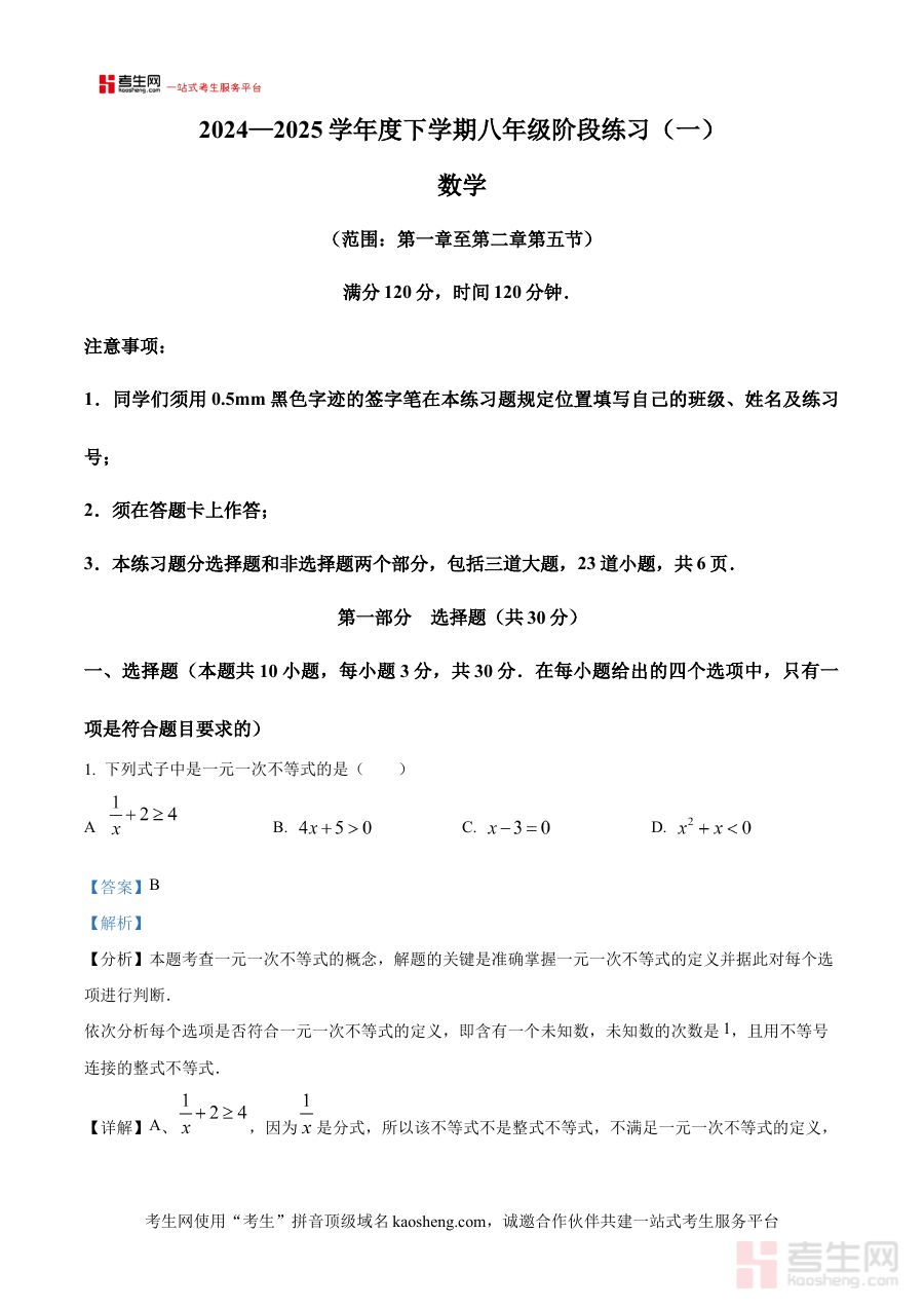 《精品解析:辽宁省沈阳铁西区部分学校2024-2025学年八年级下学期3月联考数学试题(解析版)》是针对辽宁省沈阳铁西区部分学校在2024-2025学年八年级下学期3月组织的联考数学科目的配套解析资料,聚焦该阶段区域联考的数学考试内容,为相关师生提供专业的试题解析支持。