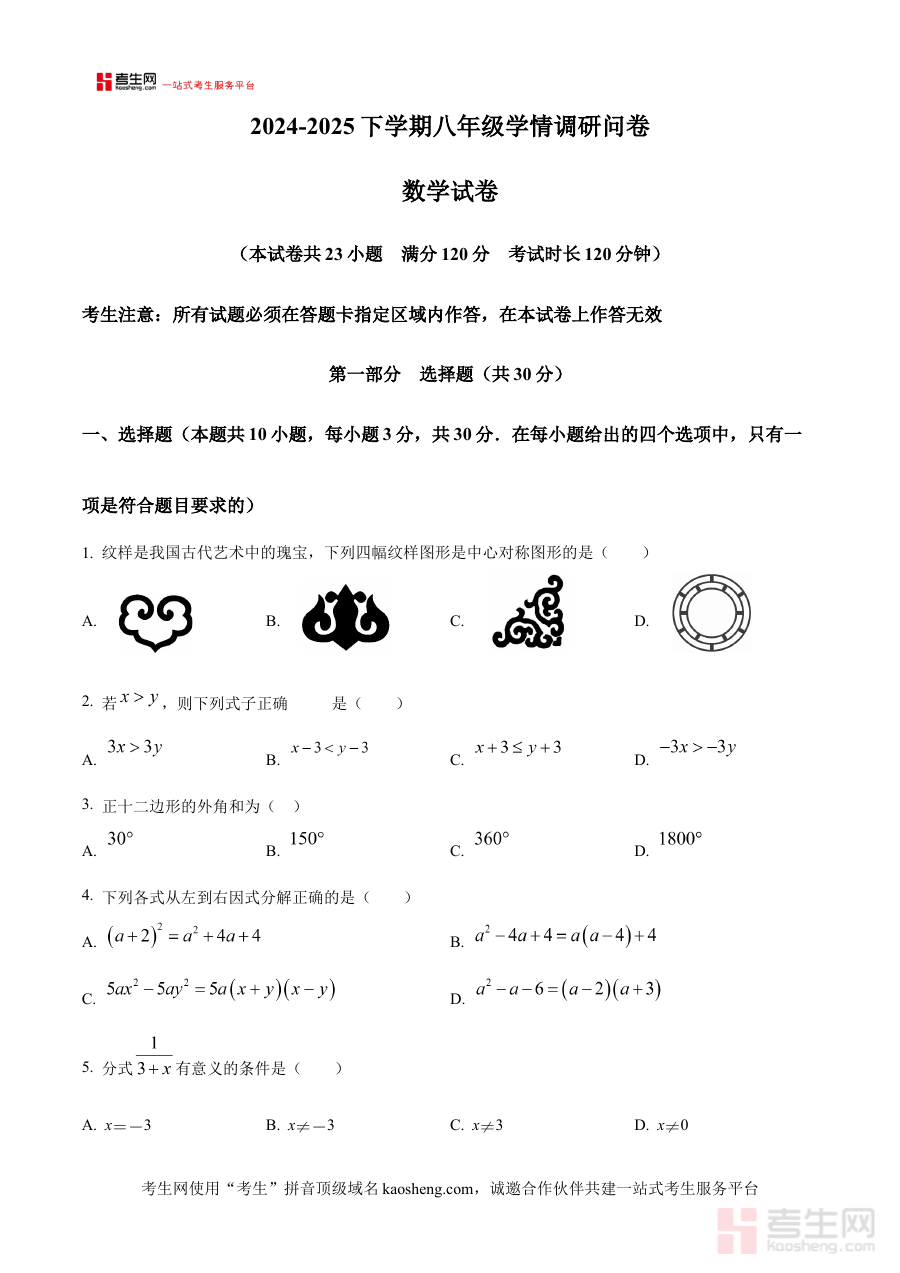 《精品解析:辽宁省沈阳市和平区2024-2025学年八年级下学期期末数学试卷(原卷版)》是针对辽宁省沈阳市和平区特定学年段数学学科期末检测的官方原卷呈现资料。该资料精准对应2024至2025学年第二学期八年级学生的数学期末考核需求,依托和平区本地教育教学标准编制,为使用者提供与实际考试形式完全一致的试卷内容,是了解该区域期末数学考试结构与命题方向的重要参考载体。