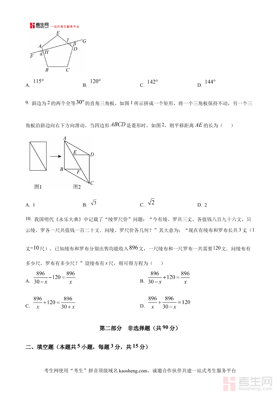 本资料适用于沈阳市沈河区2024-2025学年下学期的八年级学生、数学教师及相关教育工作者;对于学生而言可提前熟悉期末考形式与要求,对于教师可开展阶段性检测与评估以提升教学针对性,整体为区域内八年级数学期末备考提供实用且贴合本地实际的支持工具。