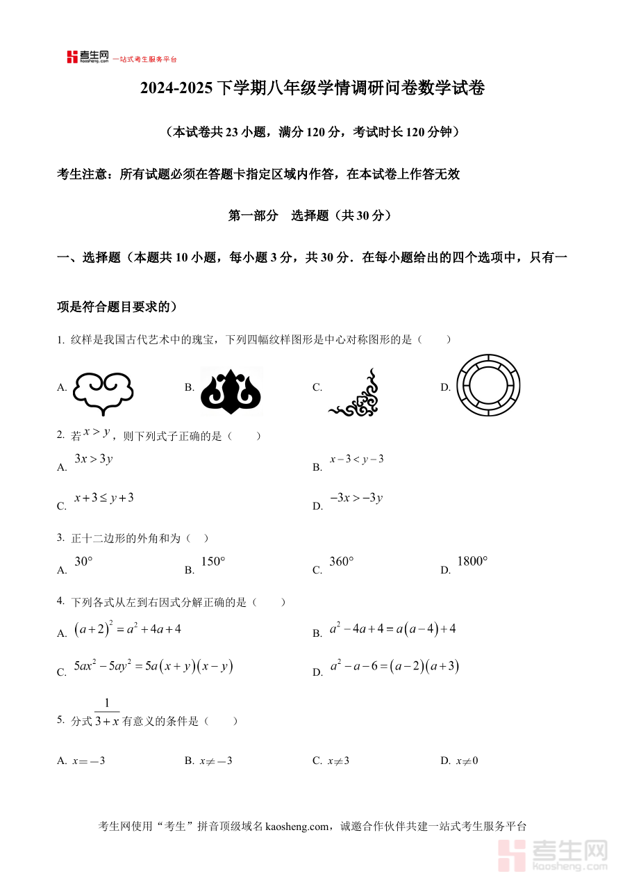 《精品解析:辽宁省沈阳市苏家屯区2024-2025学年八年级下学期期末数学试卷(原卷版)》是针对辽宁省沈阳市苏家屯区2024至2025学年八年级下学期数学期末测试的备考资料,精准匹配该地区该学年八年级下学期数学期末考试的场景,为使用者提供贴合本地教学进度与考试要求的练习载体。