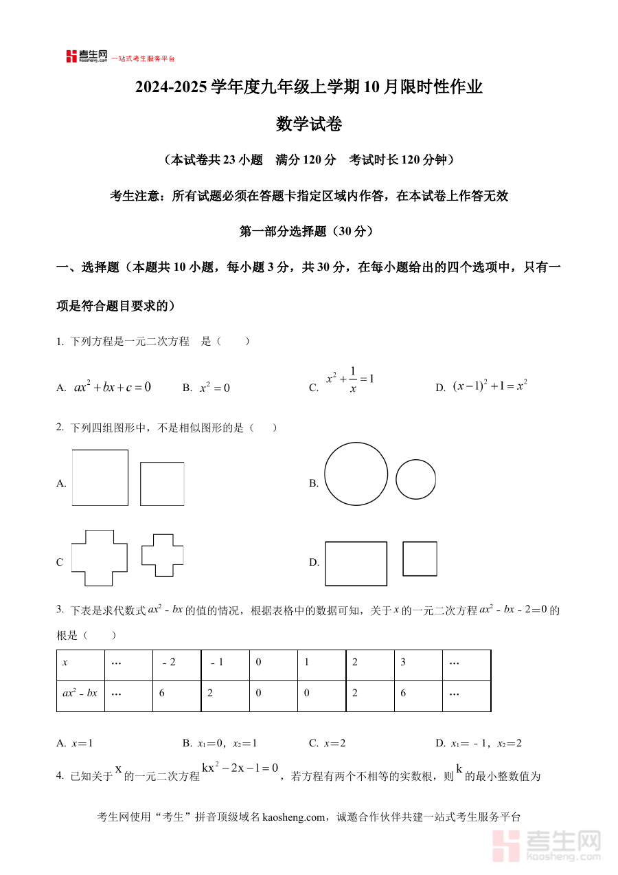 此资料适用于沈阳市南昌中学2024-2025学年九年级的学生及担任该年级数学教学的教师,对于学生而言,使用这份原卷版试卷能提前熟悉校考的命题风格与考试节奏,提升应试适应能力;对于教师来说,可借助该资料了解月考的考查方向与内容设置,辅助评估教学效果并优化后续教学安排,具有较高的阶段检测与备考规划价值。