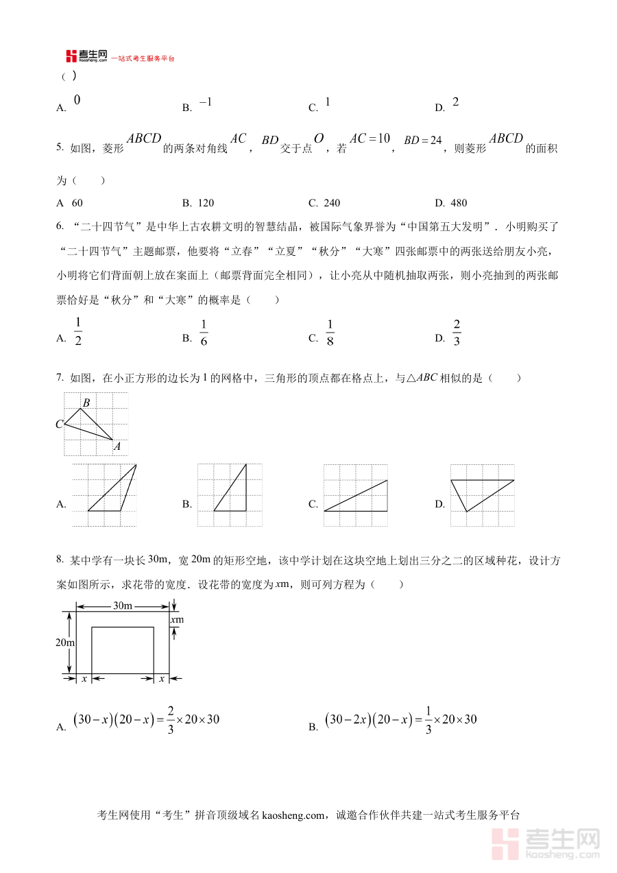 该资料以原卷版形式呈现,可用于学生进行阶段性学情诊断,通过模拟校内月考的真实流程来检验近期数学知识掌握情况,及时发现学习中的薄弱环节;同时也为教师和学生提供了备考规划的参考依据,便于基于校考的实际内容调整学习重点和教学策略,确保后续学习与教学更具针对性和有效性。