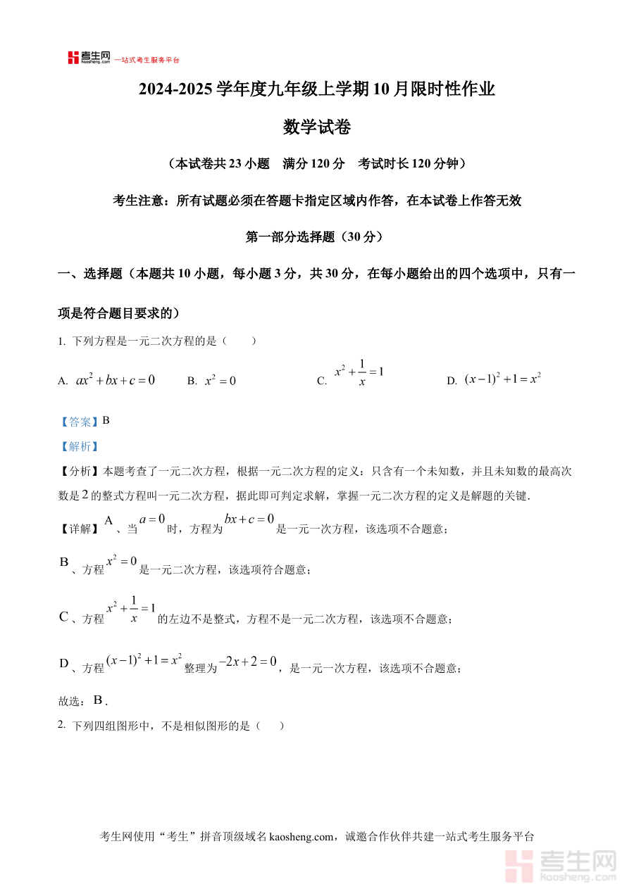 《精品解析:辽宁省沈阳市南昌中学2024-2025学年九年级上学期10月月考数学试卷(解析版)》是针对辽宁省沈阳市南昌中学特定学年及学期的数学阶段性考试资料,聚焦2024-2025学年九年级上学期10月的月考场景,精准匹配该校该阶段的教学进度与考试安排,为学生提供与校内实际考试高度契合的备考支持。
