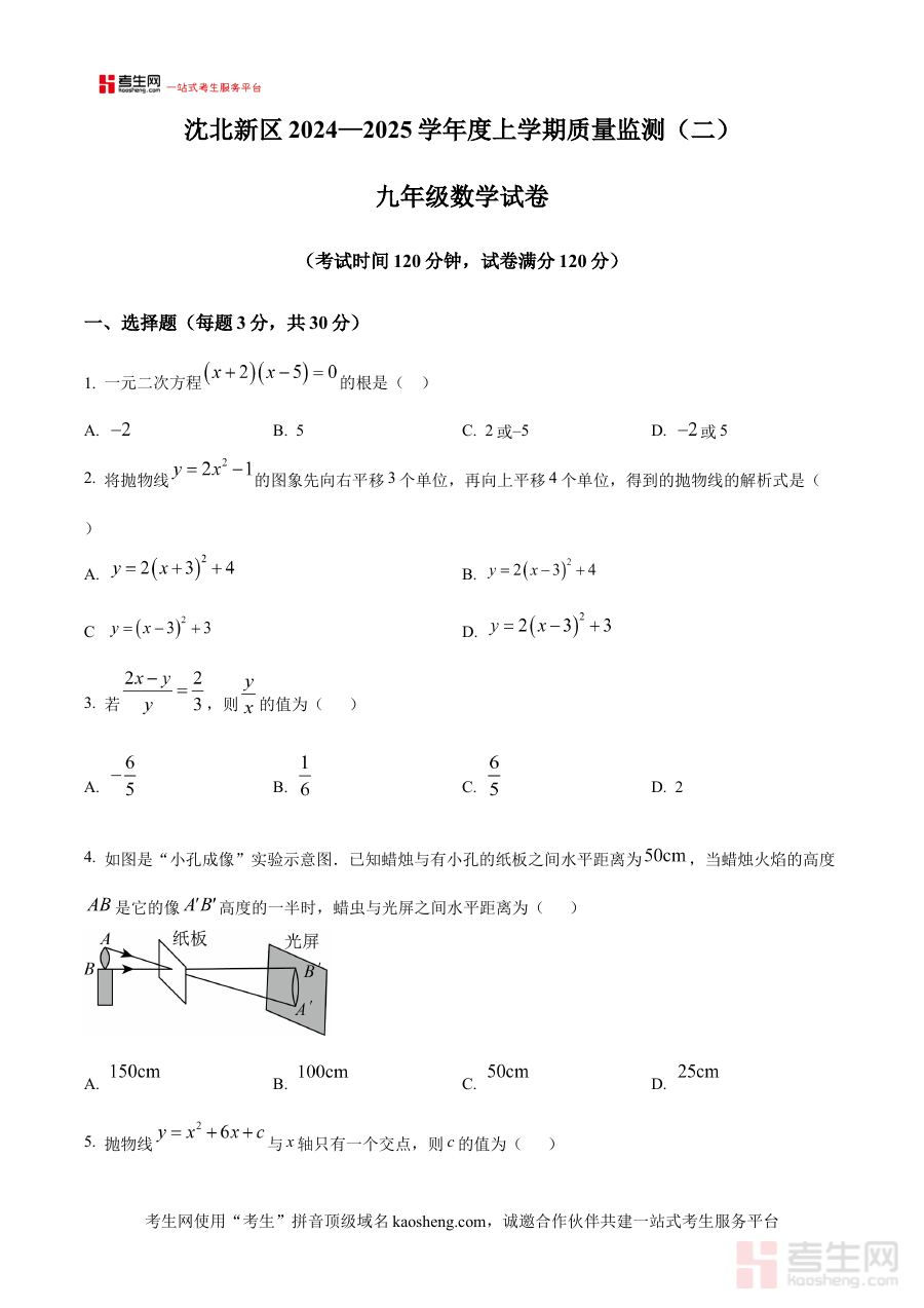 《精品解析:辽宁省沈阳市沈北新区2024-2025学年上学期九年质量监测(二)数学试题(原卷版)》是辽宁省沈阳市沈北新区针对九年级学生推出的阶段性质量监测资料,聚焦2024-2025学年上学期数学学科学习成果评估需求,有效衔接区域内九年级数学教学目标与阶段性评价体系。作为该地区本学年上学期第二次质量监测原卷版资料,它紧密贴合沈北新区九年级数学教学进度与区域考试标准,为当地师生开展教学活动及备考工作提供直接且精准的参考依据。
