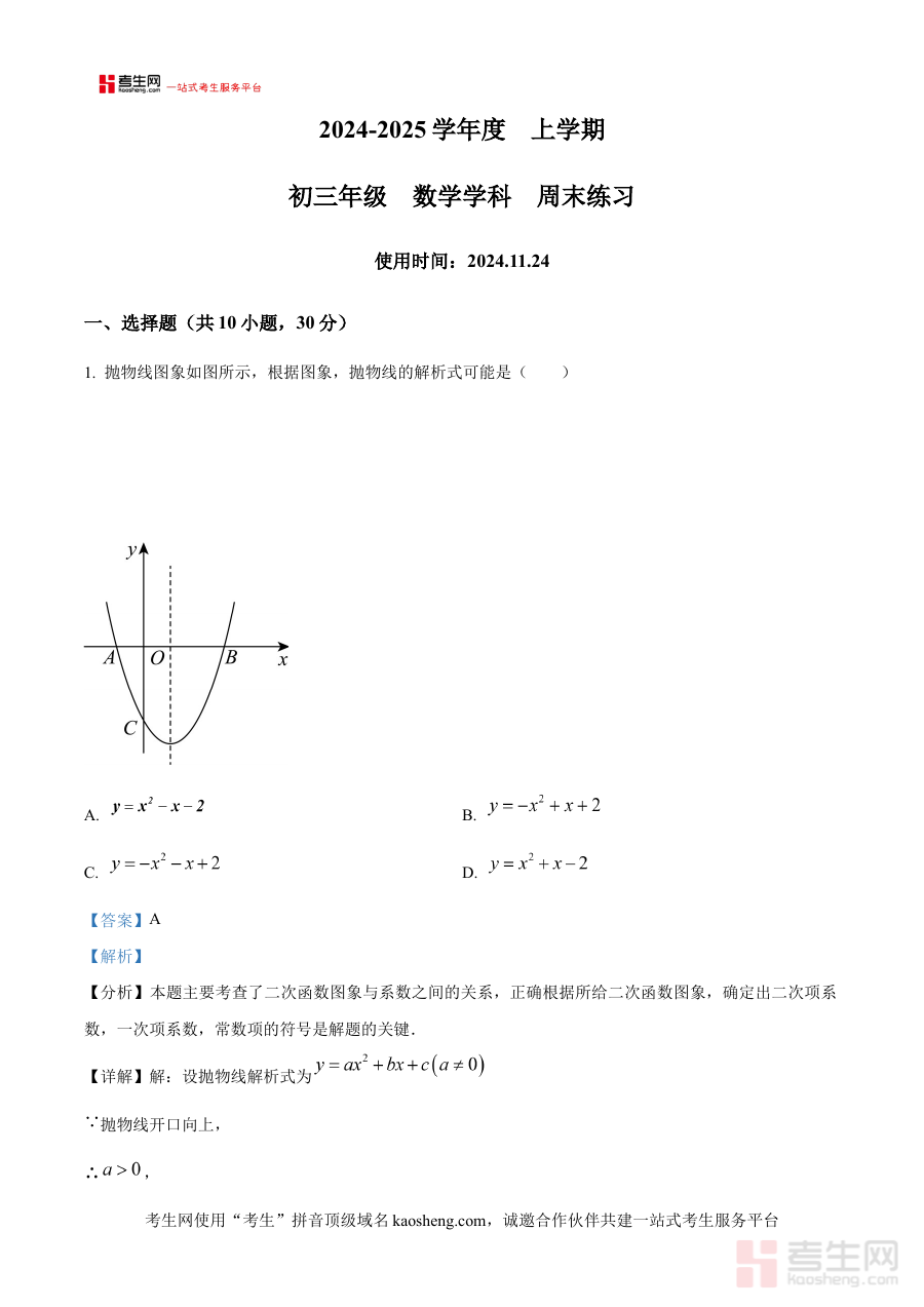 该资料主要适用于东北育才学校双语校区的九年级学生,用于其周末数学练习后的自我订正与反思;同时,沈阳地区其他九年级学生也可将其作为数学周末练习的参考资源,借助解析内容提升解题能力和知识应用水平。其价值在于通过针对性的解析引导学生掌握正确的解题方法,为后续的阶段检测和中考备考奠定坚实基础,助力学生在数学学习中稳步提升。