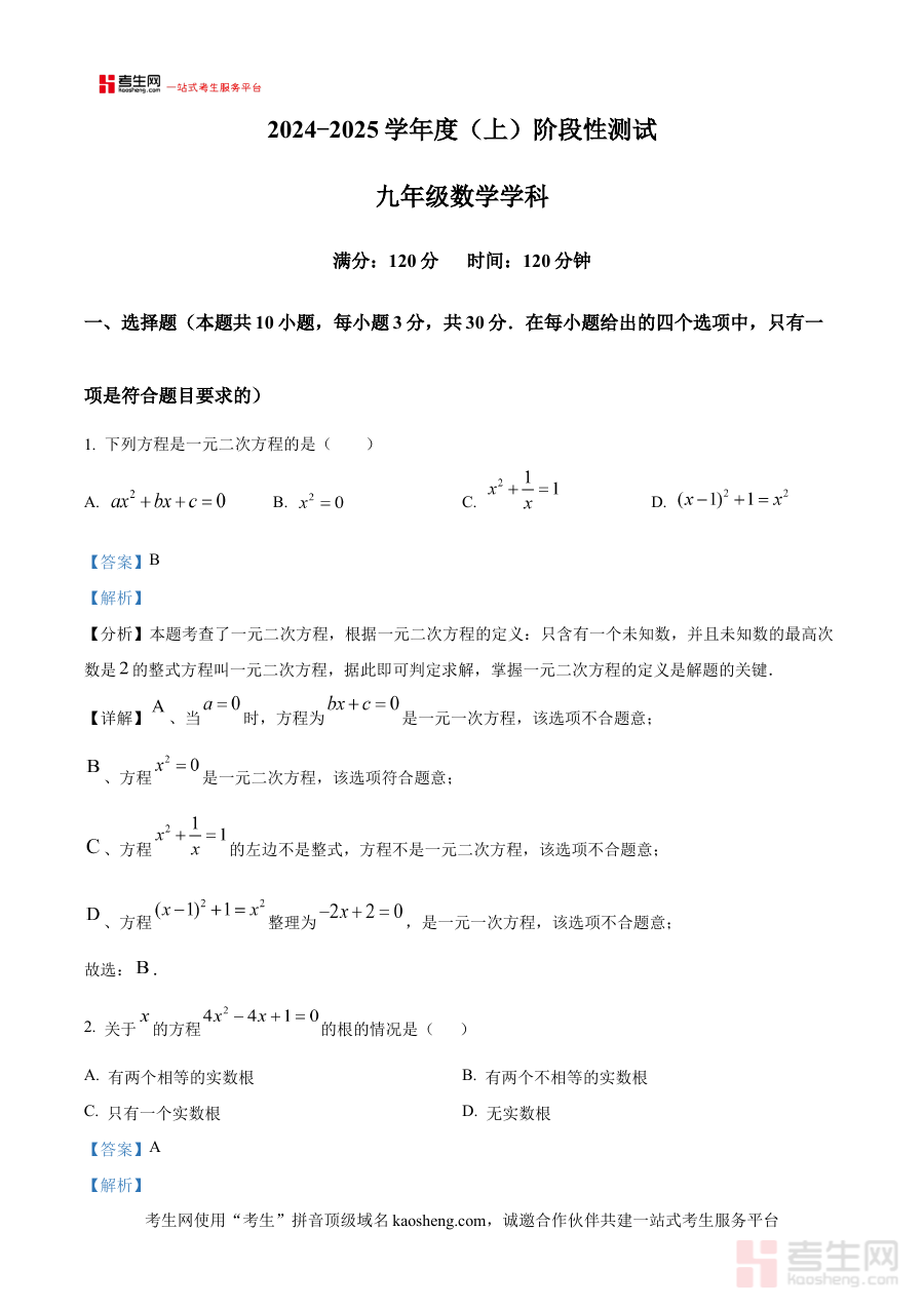 《精品解析:辽宁省沈阳市虹桥中学2024-2025学年上学期九年级10月份月考数学试卷(解析版)》是针对辽宁省沈阳市虹桥中学2024至2025学年度第一学期九年级学生10月份数学月考的配套解析资料,精准贴合该学校该阶段的数学教学进度与考试要求,为学生提供了该次月考的详细解析内容,是学生应对本次月考及后续阶段学习的重要参考材料,能够帮助学生快速对接本次考试的考查方向与学校的教学重点。