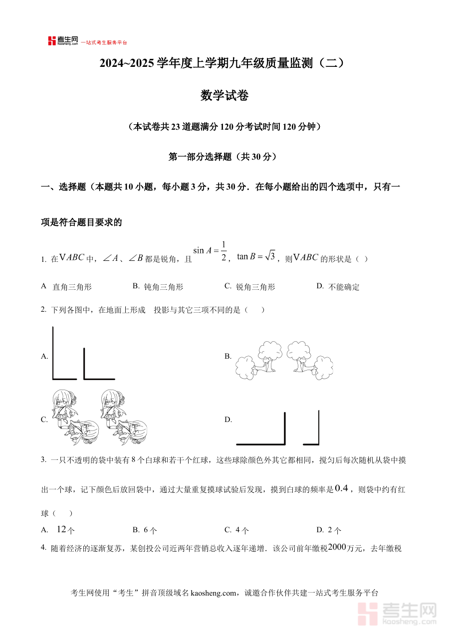 《精品解析:辽宁省沈阳市部分学校2024—2025学年上学期第二次月考九年级数学试题(原卷版)》是面向辽宁省沈阳市部分学校2024至2025学年上学期九年级数学第二次月考的专用备考资料,精准匹配该阶段的考试属性与区域教学实际,为相关学习与教学活动提供针对性资源支撑。