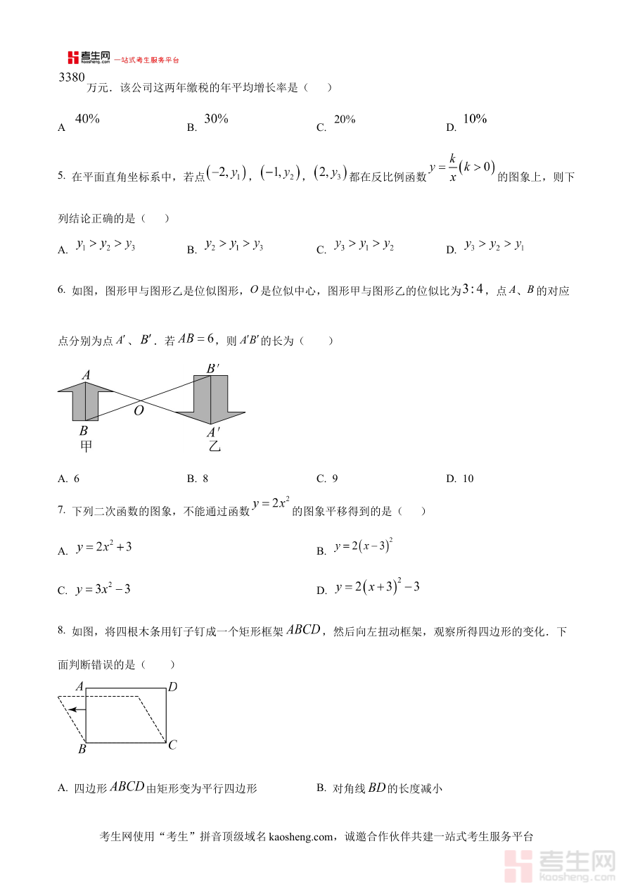 本资料主要适用于辽宁省沈阳市部分学校的九年级学生及数学教师群体,对学生而言可通过原卷练习熟悉考试形式与节奏,提升应试能力;对教师而言可作为教学评估与复习策略制定的依据,有效推动阶段教学目标的实现。