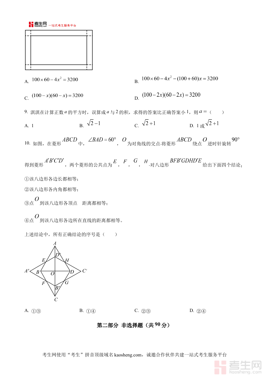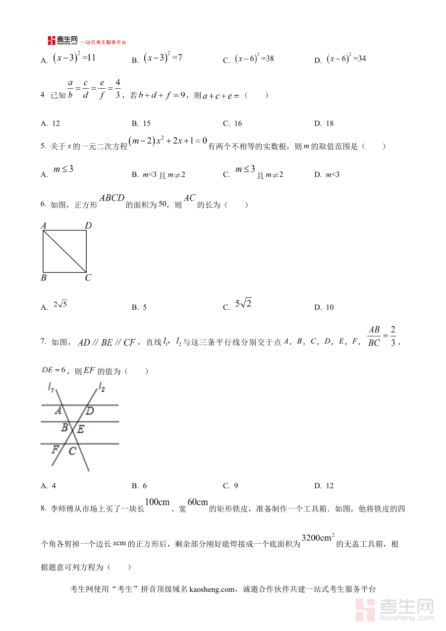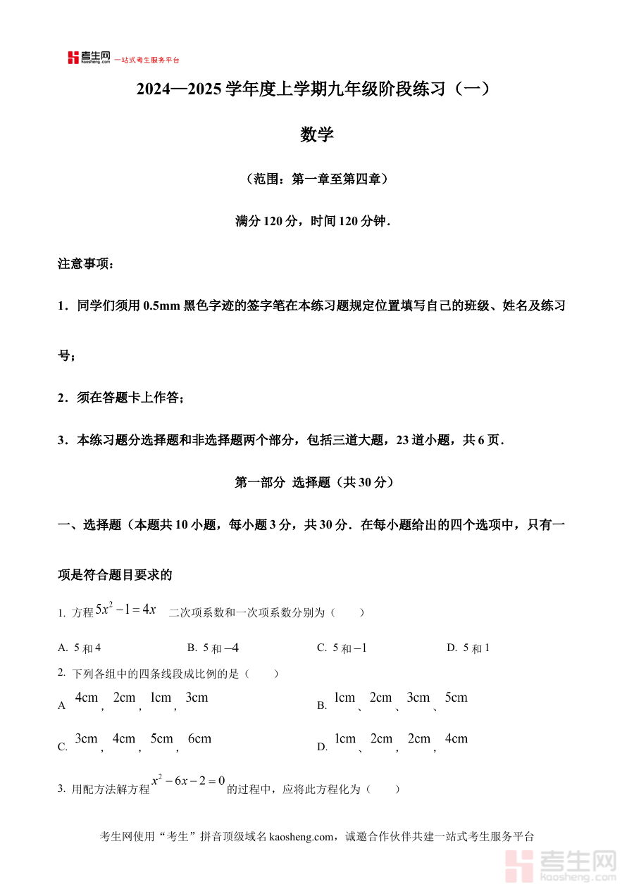 本资料适用于辽宁省沈阳市铁西区2024至2025学年上学期的九年级学生,通过原卷内容的练习与分析,能有效提升阶段检测的应对能力,助力考生在后续学习与备考中明确方向、查漏补缺,为后续的期中、期末乃至中考数学备考奠定基础。