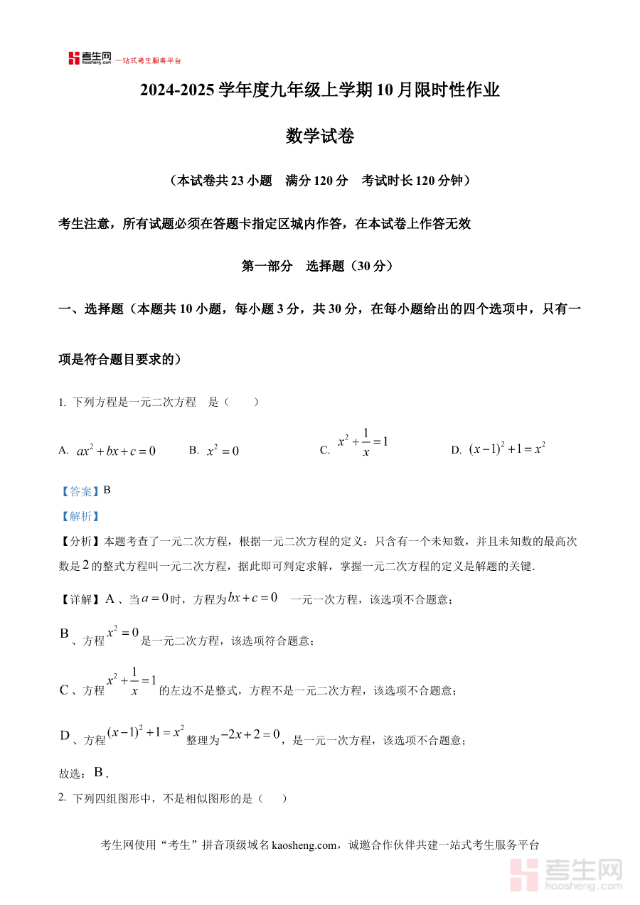 《精品解析:辽宁省沈阳市南昌初级中学2024-2025学年九年级上学期数学期中试卷 (解析版)》是针对辽宁省沈阳市南昌初级中学2024-2025学年九年级上学期数学期中考试设计的专业备考资料,紧密贴合该学校该学年九年级上学期数学教学进度与期中考察目标,为学生提供与实际考试高度匹配的复习资源支持。