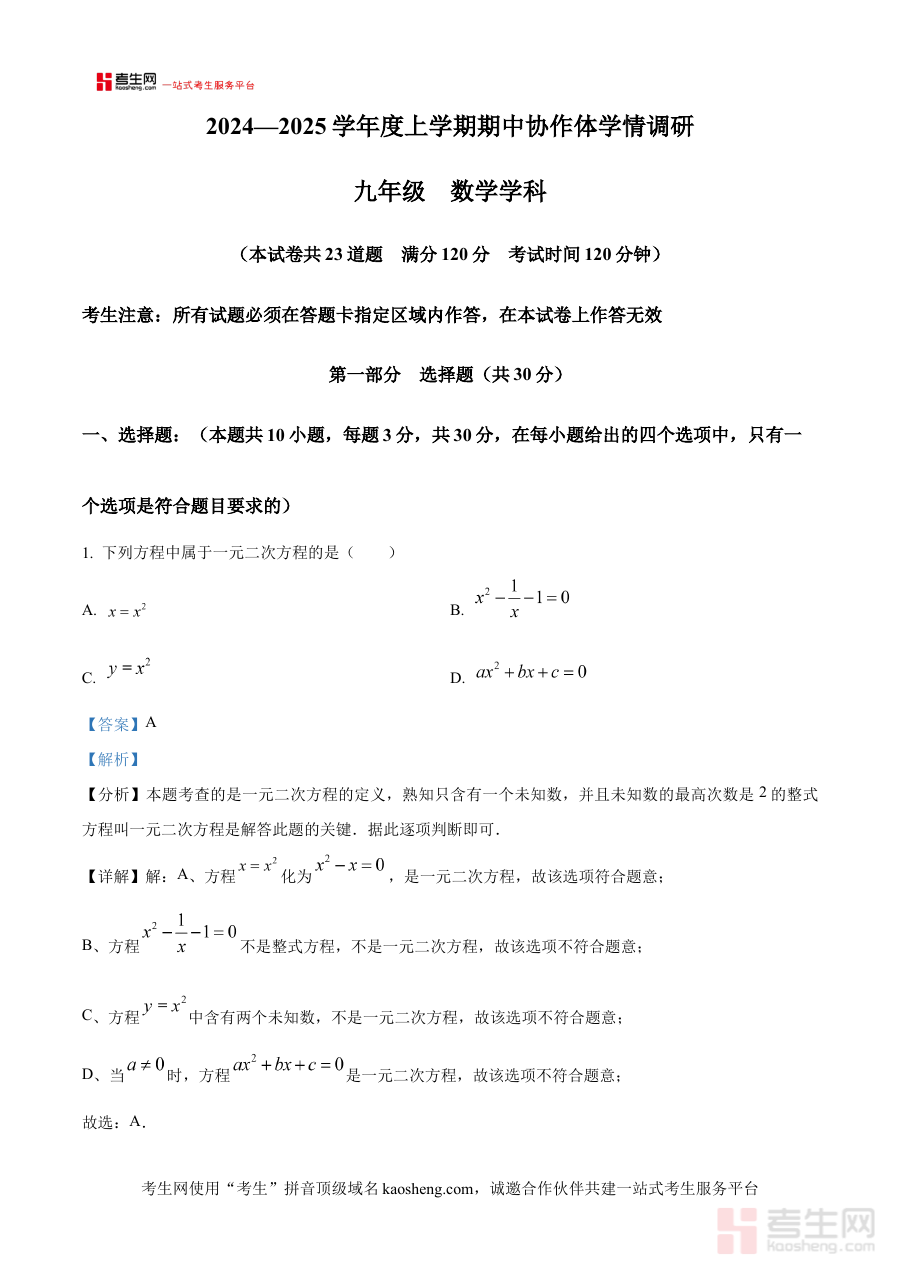 《精品解析:辽宁省沈阳市协作体(东北育才、沈阳七中、大连格致、锦州实验、丹东六中、抚顺实验、辽油实验)2024-2025学年九年级上学期期中数学试题(解析版)》是针对2024-2025学年辽宁省沈阳市协作体(涵盖多所优质中学)九年级上学期期中数学考试的专业备考资料,明确对应特定学年、地区协作体及期中阶段的数学考试属性。