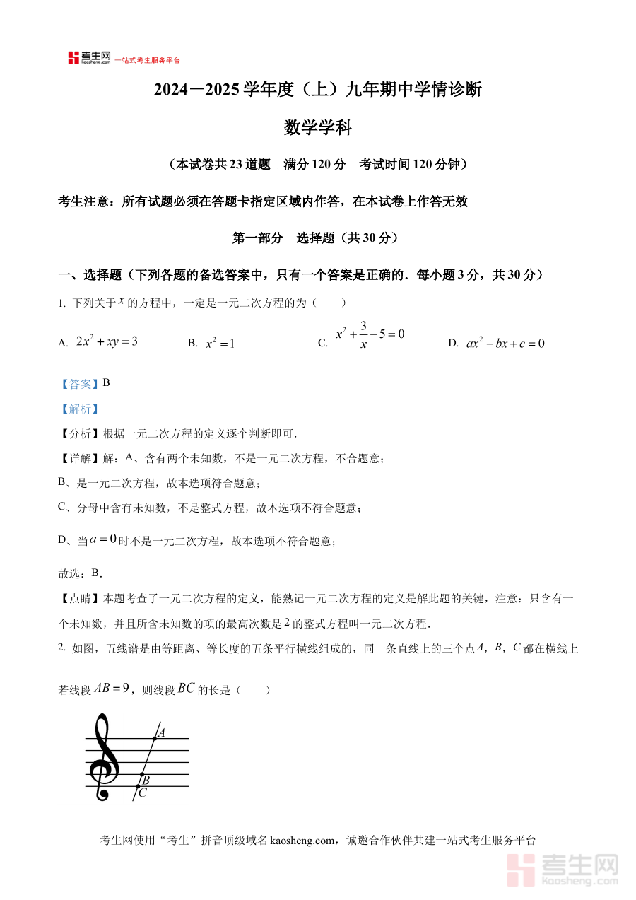 《精品解析:辽宁省沈阳市大东区2024-2025学年九年级上学期期中学情诊断数学试题(解析版)》是针对辽宁省沈阳市大东区2024-2025学年九年级上学期期中阶段学情诊断数学科目的备考资料,精准对应该区域特定学年段的期中检测需求,为学生和教师提供贴合本地教学进度与评价标准的参考内容。
