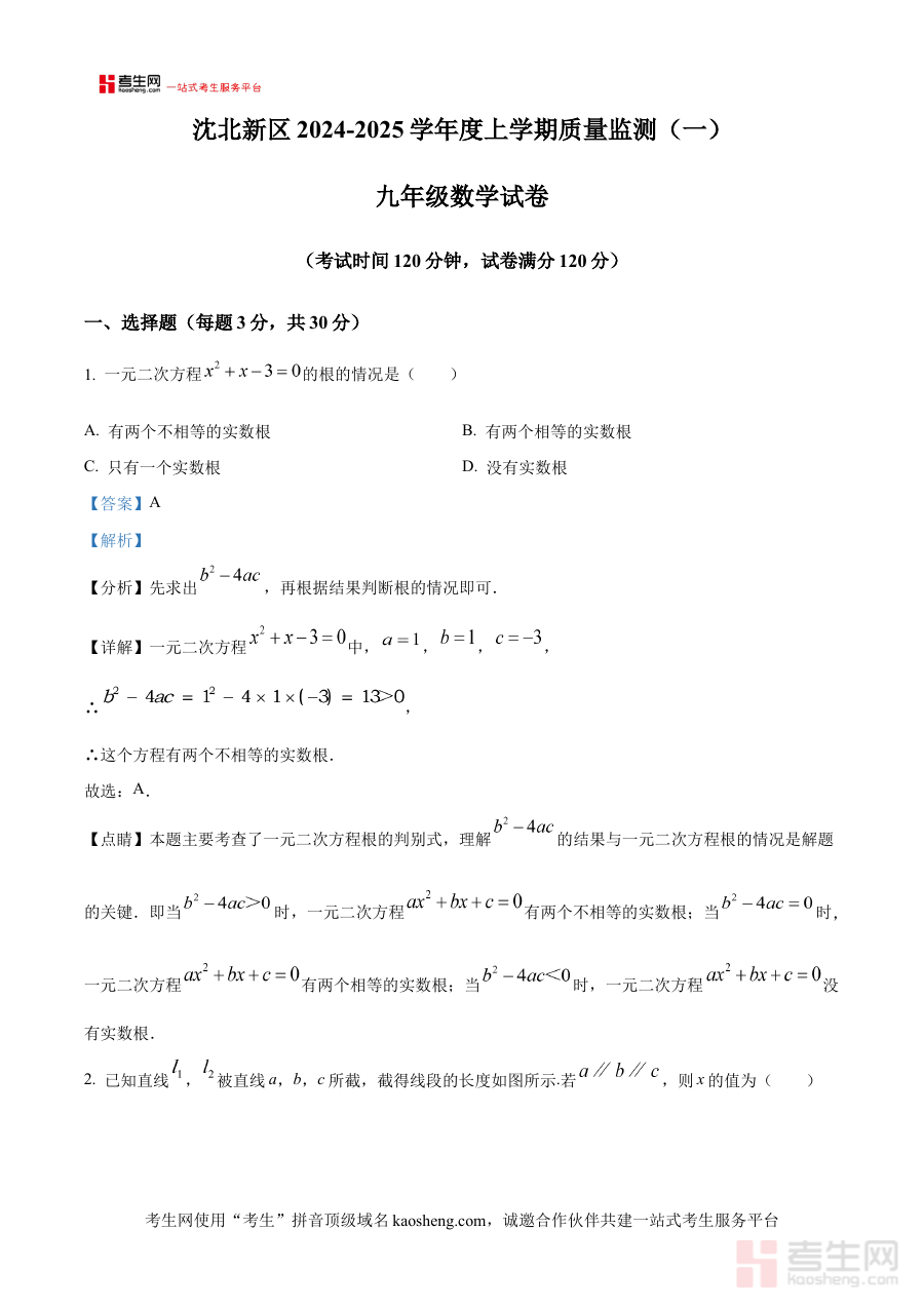 《精品解析:辽宁省沈阳市沈北新区2024-2025学年九年级上学期期中数学试题(解析版)》是针对辽宁省沈阳市沈北新区2024至2025学年九年级上学期期中数学考试的专业备考资料,精准对应该地区该学年九年级学生的期中阶段数学学习检测需求,为学生和教师提供了贴合本地教学进度与考试方向的参考依据。