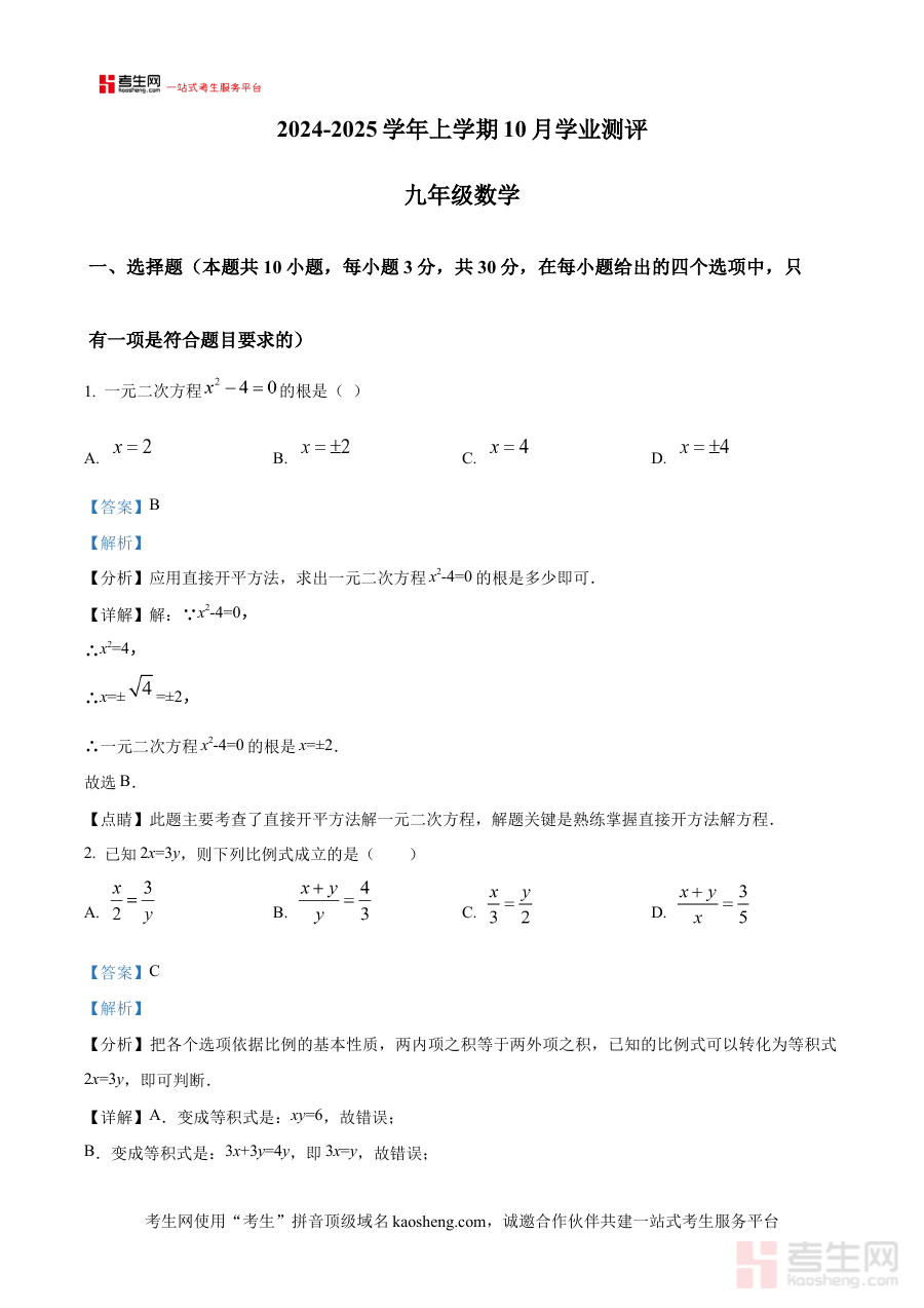 《精品解析:辽宁省沈阳市浑南区2024-2025学年九年级上学期10月期中数学试题(解析版)》是针对辽宁省沈阳市浑南区特定学年及学段的期中数学考试所编制的专业备考资料,精准匹配该地区九年级学生在2024-2025学年秋季学期中期的数学学习进度与本地考试要求,为学生和教师提供了贴合浑南区教学实际的权威参考依据,有助于使用者快速把握本次期中数学考试的整体框架与考查重点。