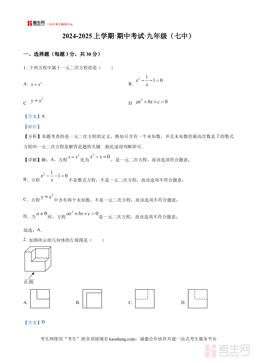 《精品解析:辽宁省沈阳市第七中学2024-2025学年上学期九年级期中考试数学试题(解析版)》是针对辽宁省沈阳市第七中学2024至2025学年第一学期九年级数学期中考试的专业备考资料。该资料紧密贴合该校当期期中考试的命题背景与考查方向,以解析版形式呈现完整试题及对应解答过程,为学生提供与本次考试直接关联的复习资源,帮助其提前熟悉考试整体结构与核心要求,为后续针对性复习奠定基础。