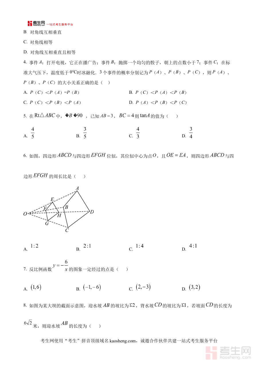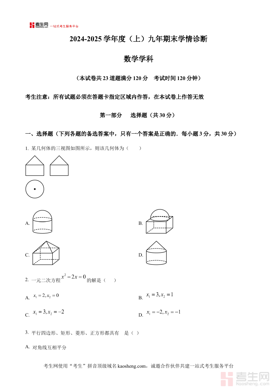 该资料可用于九年级学生进行期末学情诊断,帮助学生了解自身对本学期数学知识的掌握情况,也可为教师或家长提供参考,辅助制定针对性的备考规划与阶段复习策略,助力学生在期末阶段有效巩固所学内容。
