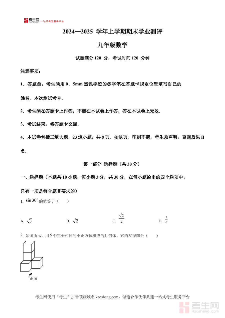 本资料主要适用于辽宁省沈阳市浑南区2024至2025学年的九年级学生,同时也可为该地区数学教师提供教学参考及检测资源,助力学生通过阶段检测明确学习薄弱环节,高效规划期末备考,提升应对本地期末考试的综合能力。
