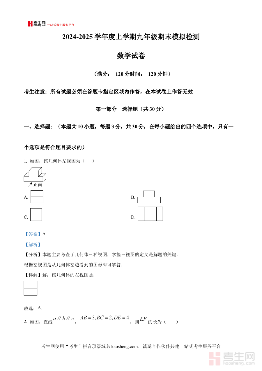 《精品解析:辽宁省沈阳市第七中学2024-2025学年上学期九年级期末数学模拟试卷(解析版)》是针对辽宁省沈阳市第七中学2024至2025学年第一学期九年级学生期末数学模拟考试打造的专业备考资料。它紧密贴合该学年该阶段的数学教学进度与沈阳地区的教育实际要求,为使用者提供适配本地教学场景的模拟检测支持,是期末备考阶段具有针对性的学习资源。