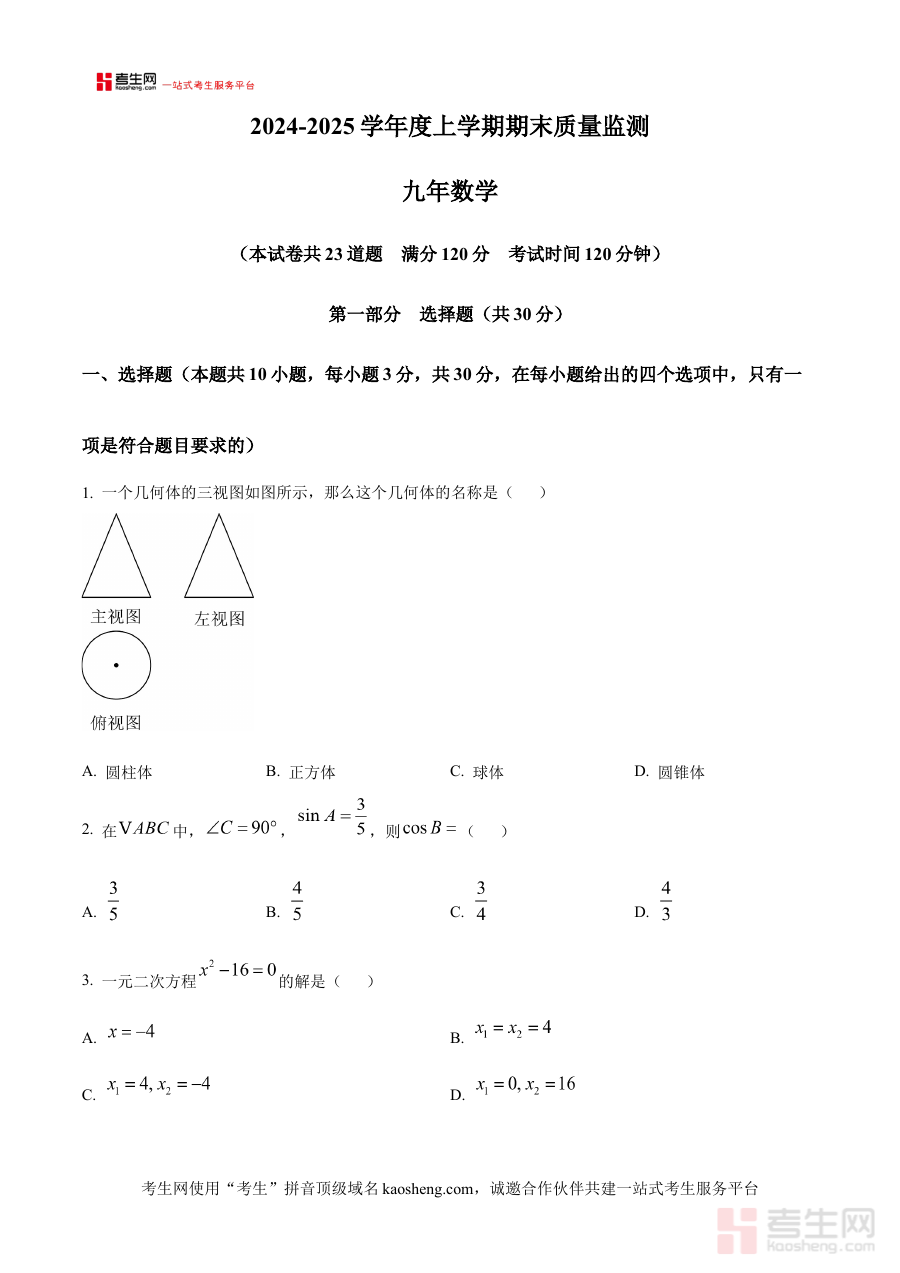 本资料主要适用于辽宁省沈阳市铁西区2024-2025学年的九年级学生,同时也可为该地区的数学教师提供教学检测参考素材及为参与学生辅导的人员提供针对性备考资源;其原卷版呈现形式能让使用者更精准感知本地期末考的实际考查形式与难度定位,进一步强化阶段检测与备考规划的有效性,助力使用者在期末考中取得理想成绩。
