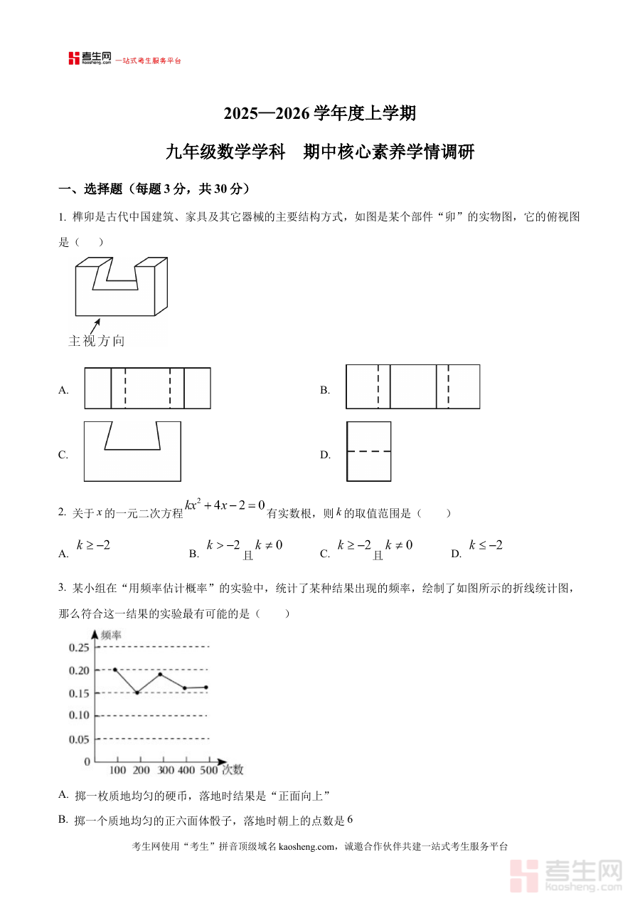 《精品解析:辽宁省沈阳市第一三四中学2025-2026学年九年级上学期11月月考数学试卷(原卷版)》是针对辽宁省沈阳市地区、2025-2026学年九年级上学期11月阶段的数学月考考试编制的备考资料。该资料贴合沈阳本地学校的教学进度与区域考试要求,为学生提供符合阶段学习目标的考试参考载体。