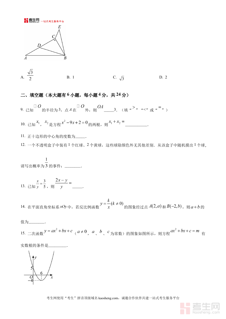 本资料主要适用于福建省厦门第六中学九年级学生及数学教师,学生通过使用原卷版试题能清晰识别自身学习薄弱环节,教师可借助其进行学情分析与教学优化,有效支持师生开展阶段复习与备考规划,提升数学学习与教学的针对性和效率。