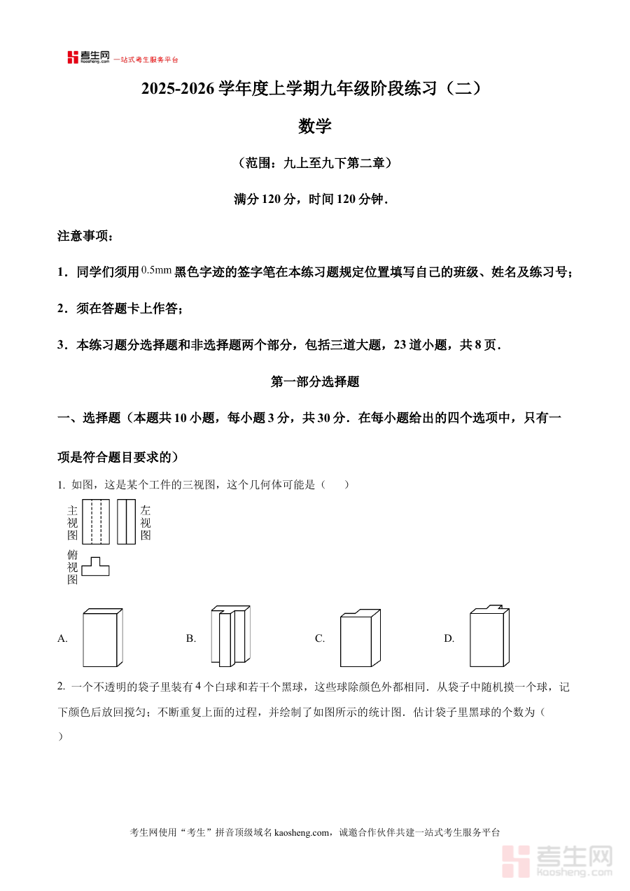 《精品解析:辽宁省沈阳市私立学校联考2025-2026学年九年级上学期12月月考数学试题(原卷版)》是针对辽宁省沈阳市私立学校在2025-2026学年九年级上学期12月组织的联考数学科目的原卷资料。该资料紧密贴合沈阳地区私立学校联考的考试体系,精准匹配九年级上学期12月阶段的学习进度与考查需求,为相关师生提供了与实际考试场景高度一致的备考载体。它完整保留了联考原卷的结构与呈现形式,能够帮助使用者直观感知该次联考数学试题的整体架构与考查方向。