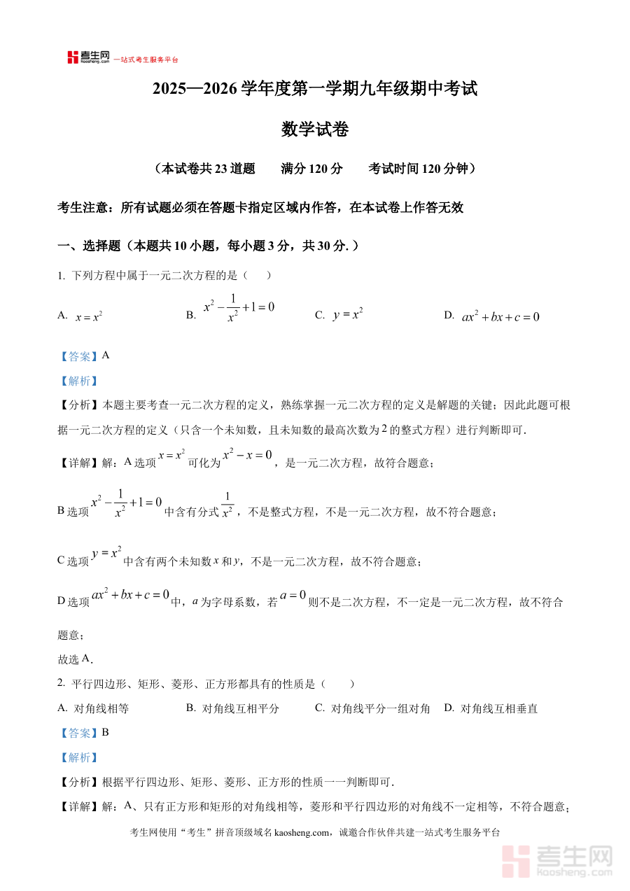 本资料适用于辽宁省沈阳市法库县2025-2026学年九年级学生及相关数学教师,作为期中阶段检测的辅助工具,其解析内容可帮助学生巩固知识、查漏补缺,也为教师开展教学评估与指导提供参考,具有较强的阶段备考与教学支持价值。