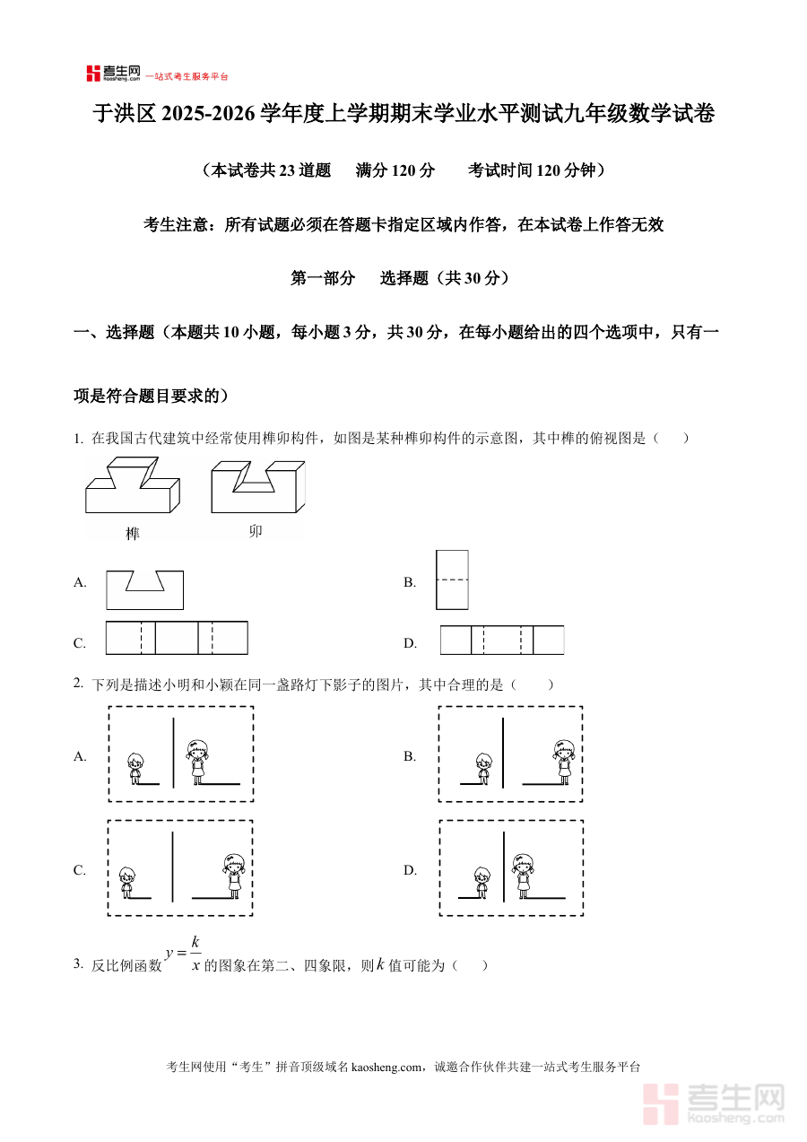 《精品解析:辽宁省沈阳市于洪区2025-2026学年九年级上学期期末数学试卷(原卷版)》是针对辽宁省沈阳市于洪区2025至2026学年九年级上学期期末数学考试的备考资料,准确对应该地区特定学年与学段的期末检测需求,为使用者提供贴合本地教学进度与考试方向的原始试卷内容,助力了解该次期末数学考试的整体架构与命题背景,是衔接九年级上学期学习与期末复习阶段的重要参考材料。