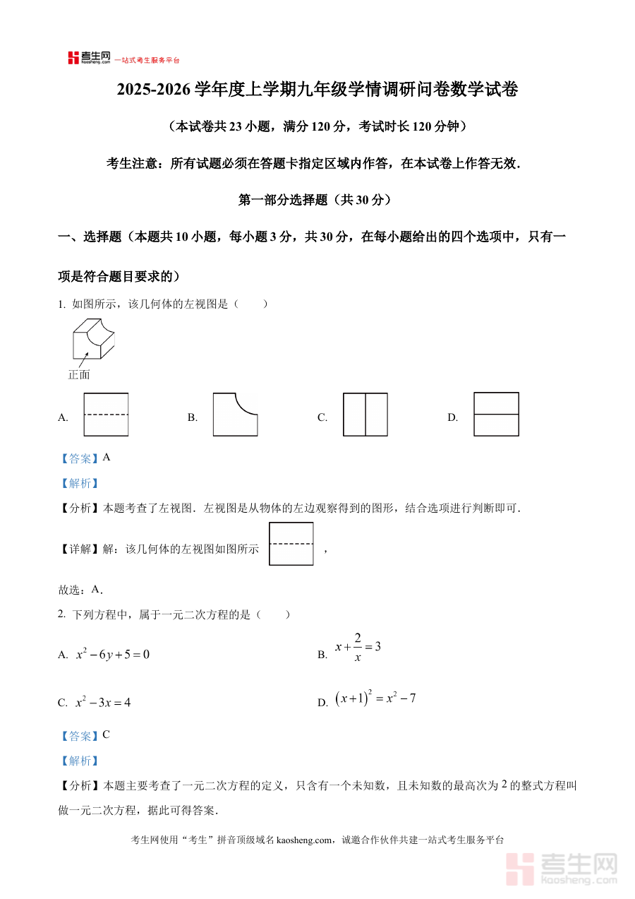 本资料适用于沈阳市苏家屯区2025-2026学年九年级学生及从事初中数学教学工作的教师群体,对于学生而言,它能助力提升期末备考的效率与针对性,对于教师而言,则可作为教学评估与复习指导的参考资源,充分发挥其在阶段检测与备考规划中的实用价值。
