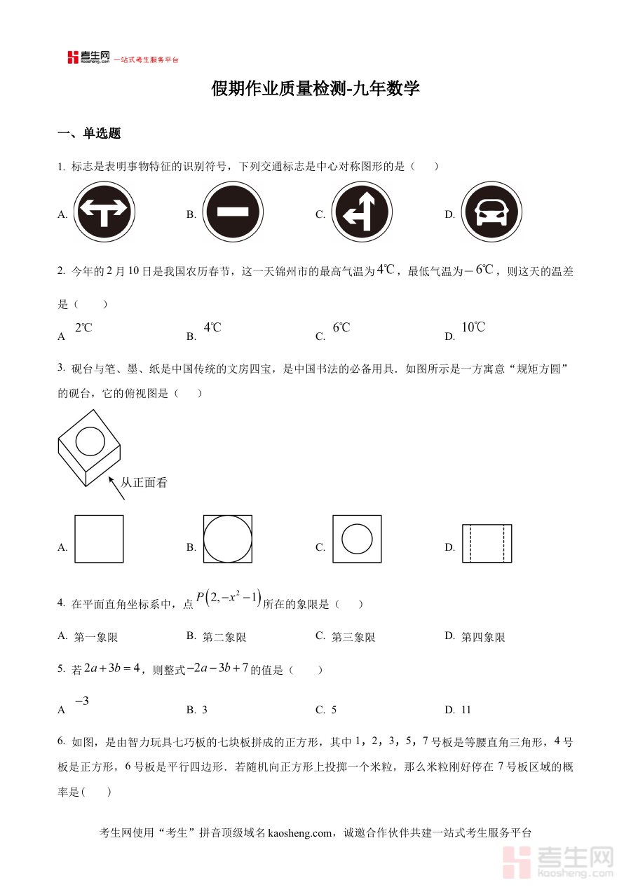 该原卷版资料可用于九年级学生进行数学学科的阶段性学情诊断,帮助教师精准把握学生在本学期学习过程中的知识掌握情况与能力水平差异,为后续教学内容调整、复习计划制定以及备考策略优化提供数据支持,同时也能让学生提前熟悉本校质量检测的命题思路与考查重点。