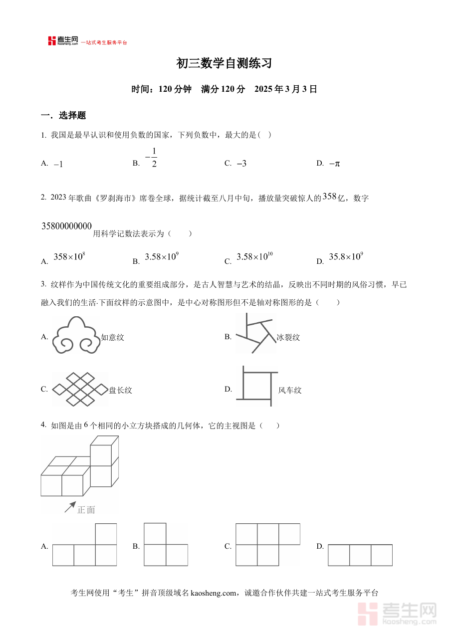 《精品解析:辽宁省沈阳市东北育才学校2024-2025学年九年级下学期开学考试数学试题(原卷版)》是针对2024-2025学年沈阳地区东北育才学校九年级下学期开学阶段数学考试的专属备考资料,精准匹配该校该阶段数学教学进度与考查标准,为使用者提供与实际考试高度契合的原卷内容支撑,助力师生把握开学考试的核心方向与考查重点。
