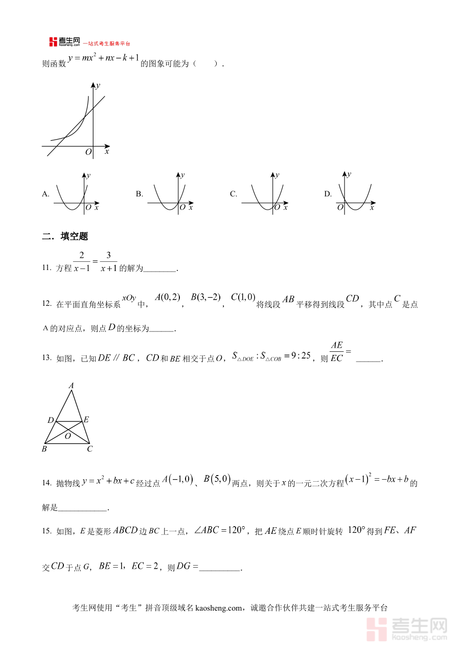 本资料适用于东北育才学校九年级学生及沈阳地区同类学校的九年级学生群体,通过使用该原卷版试题,学生能够模拟真实开学考试情境,提前熟悉考试形式与作答节奏,为新学期数学学习及中考备考制定更具针对性的提升规划,有效增强阶段学习的效率与备考的精准性。