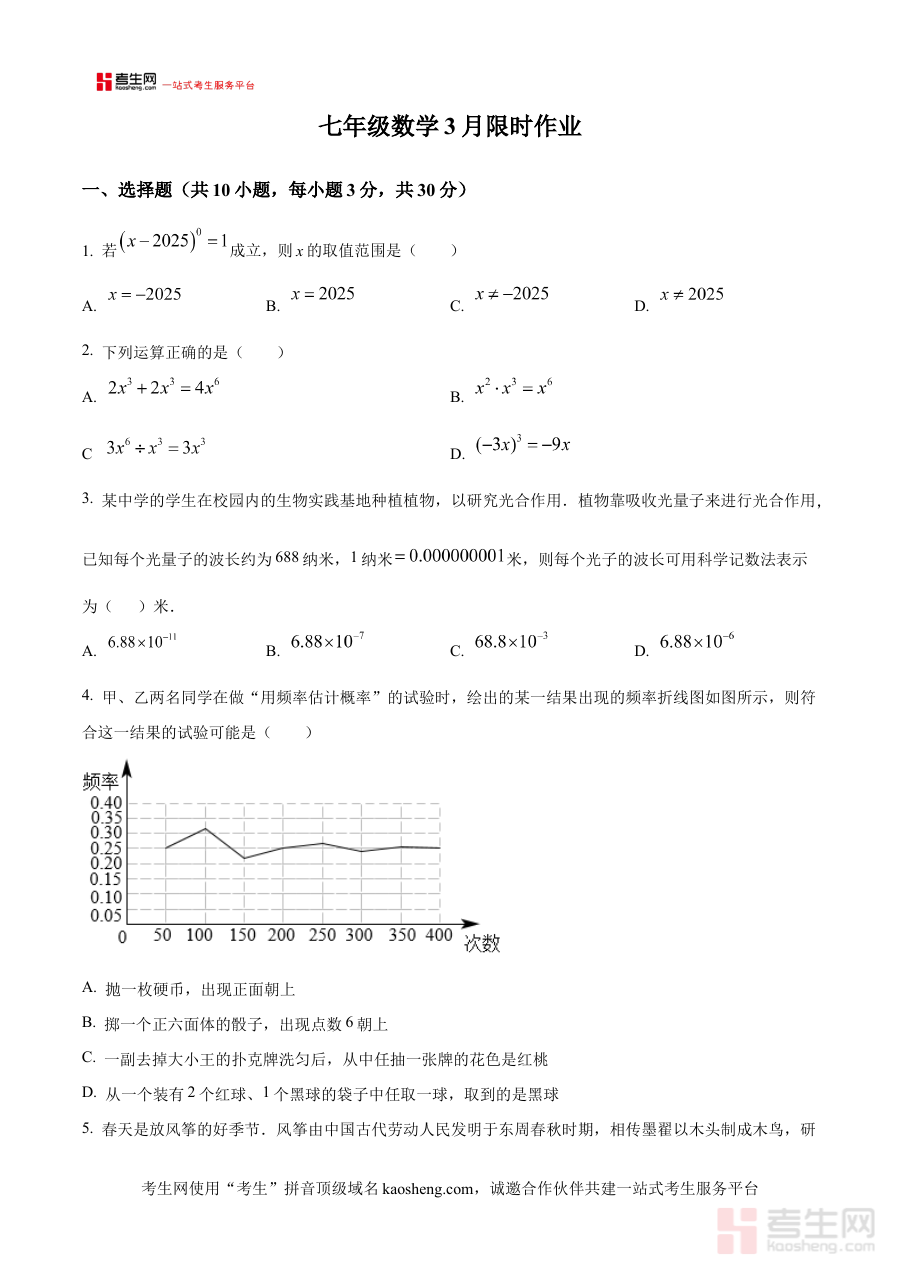 《精品解析:陕西省西安市陕西师范大学附属中学2024-2025学年七年级下学期3月月考数学试题(原卷版)》是针对陕西省西安市陕西师范大学附属中学2024-2025学年七年级下学期3月数学月考设计的专项备考资料,精准匹配该学段该时间节点的数学学科阶段性考试需求,依托学校的教学进度与考试命题方向,为使用者提供贴合实际考试场景的原卷呈现形式,确保资料与本次月考的考查目标高度契合。