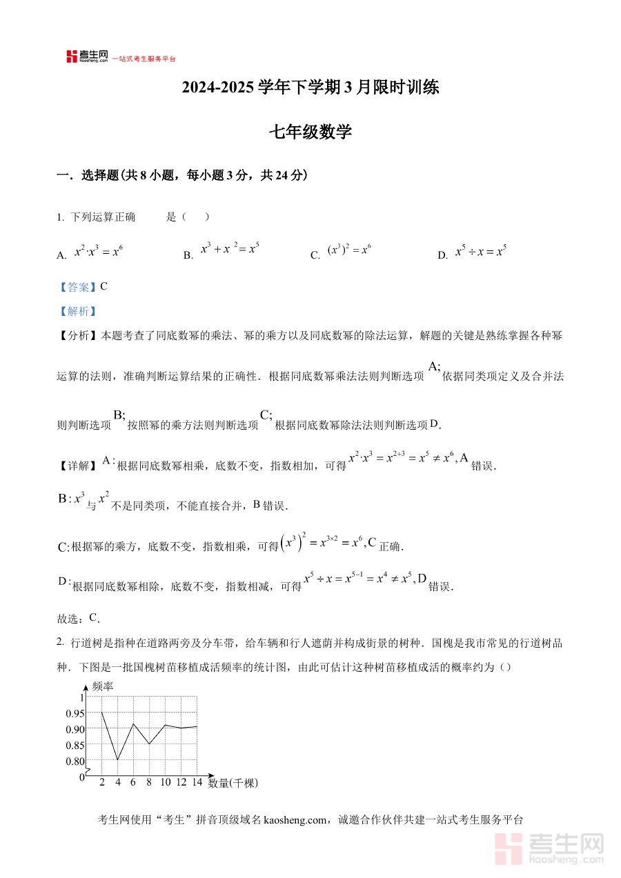 《精品解析:陕西省西安市雁塔区第三初级中学2024-2025学年七年级下学期第一次月考数学试题(解析版)》是针对2024-2025学年陕西省西安市雁塔区第三初级中学七年级下学期第一次月考数学科目的专业备考资料。该资料依托该校该学期教学进度与考试要求编制而成,以本次月考数学试题为核心内容,解析版的呈现形式能够为使用者提供全面且深入的试题解读,帮助其准确把握考试的考查方向与核心要点,是适配该阶段数学学习需求的针对性资源。