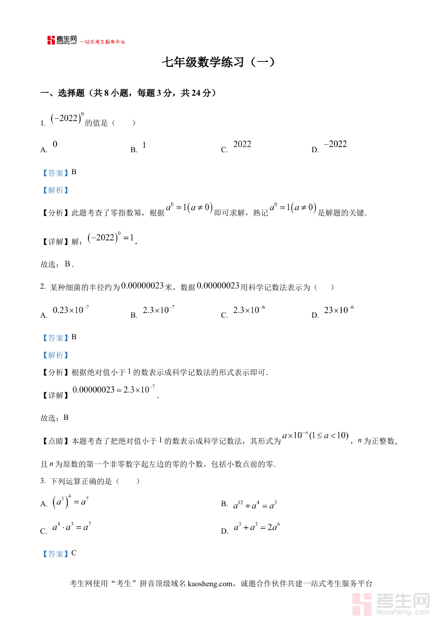 《精品解析:陕西省西安市高新区第一中学2024-2025学年七年级下学期开学考试数学试题(解析版)》是针对陕西省西安市高新区第一中学特定学年段与考试场景的数学备考资料,依托学校官方考试命题方向,结合七年级下学期开学阶段的知识衔接特点,聚焦2024-2025学年七年级下学期开学这一关键节点,精准对接该学校七年级学生的数学学习进度与开学检测需求,为相关使用者提供具有明确指向性的备考支持与资源参考。