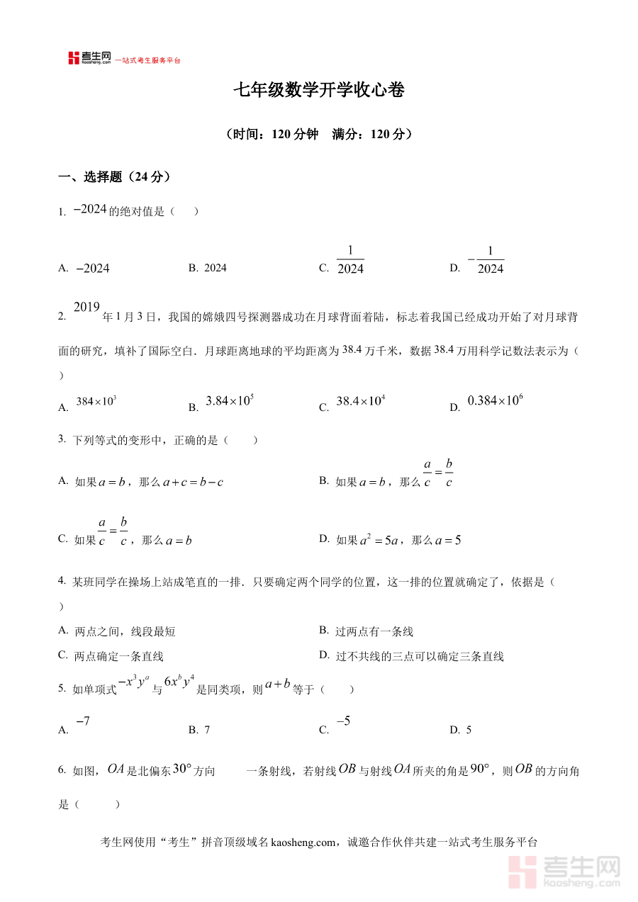 作为开学考试的原卷版本,该资料能够有效支持师生开展学情诊断与备考规划工作。教师可借助它了解学生在开学初期的数学知识掌握情况,为后续教学内容的调整与教学进度的安排提供客观依据;学生则可通过接触该原卷熟悉开学考试的考查形式与整体节奏,从而更有针对性地进行考前复习与知识巩固,提升阶段检测的准备效率,避免盲目复习导致的资源浪费。