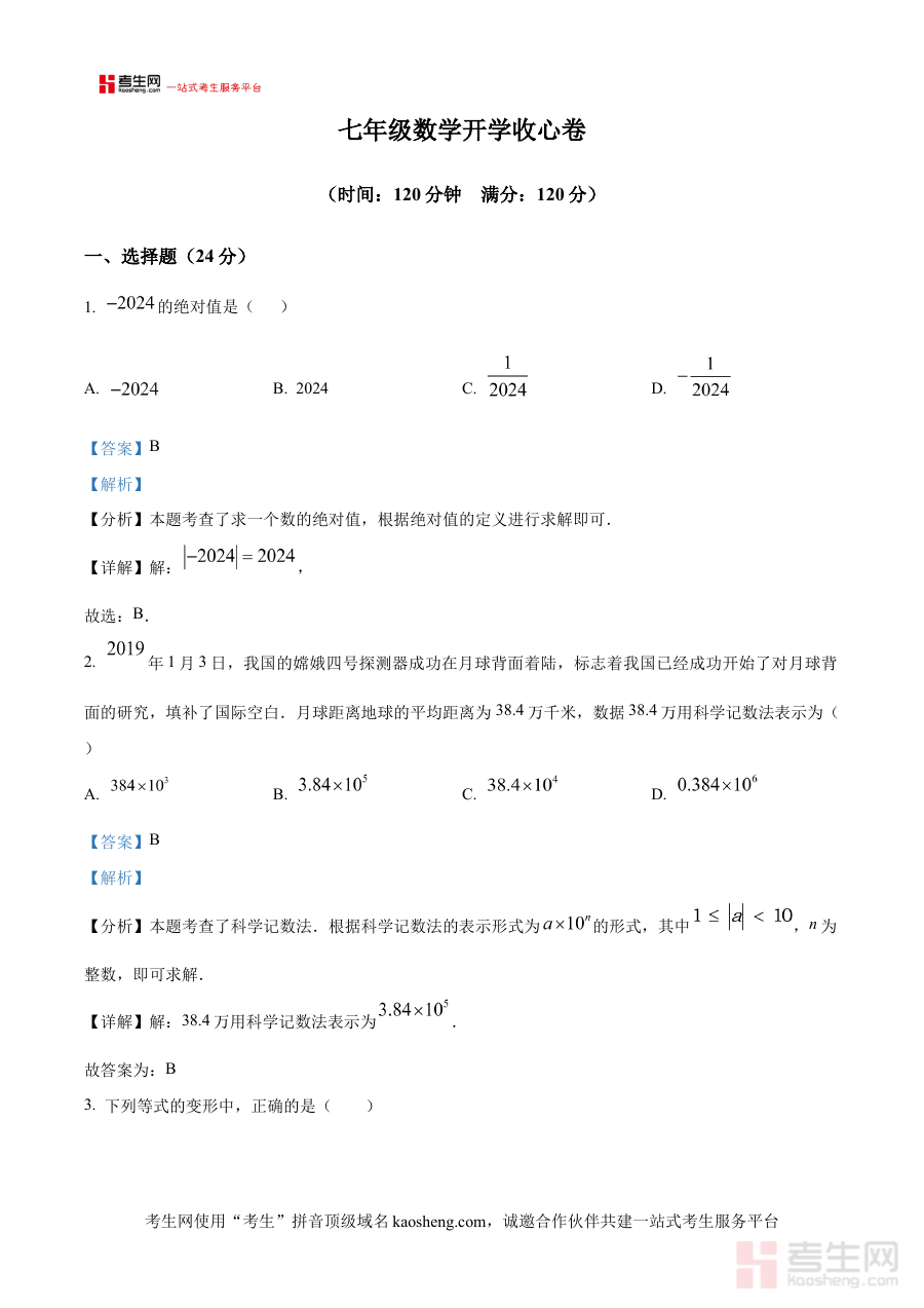 此资料的适用人群主要为陕西省西安市高新第二初级中学2024-2025学年七年级的学生及相关教师,同时对其他面临类似开学考试场景的七年级数学学习者也具有参考价值。它在阶段检测方面能帮助学生快速定位自身知识掌握情况,在备考规划层面可引导师生明确后续学习优先级与方向,助力学生发现上一阶段学习漏洞、奠定新学期基础,也辅助教师制定针对性教学计划、推动教学质量提升。