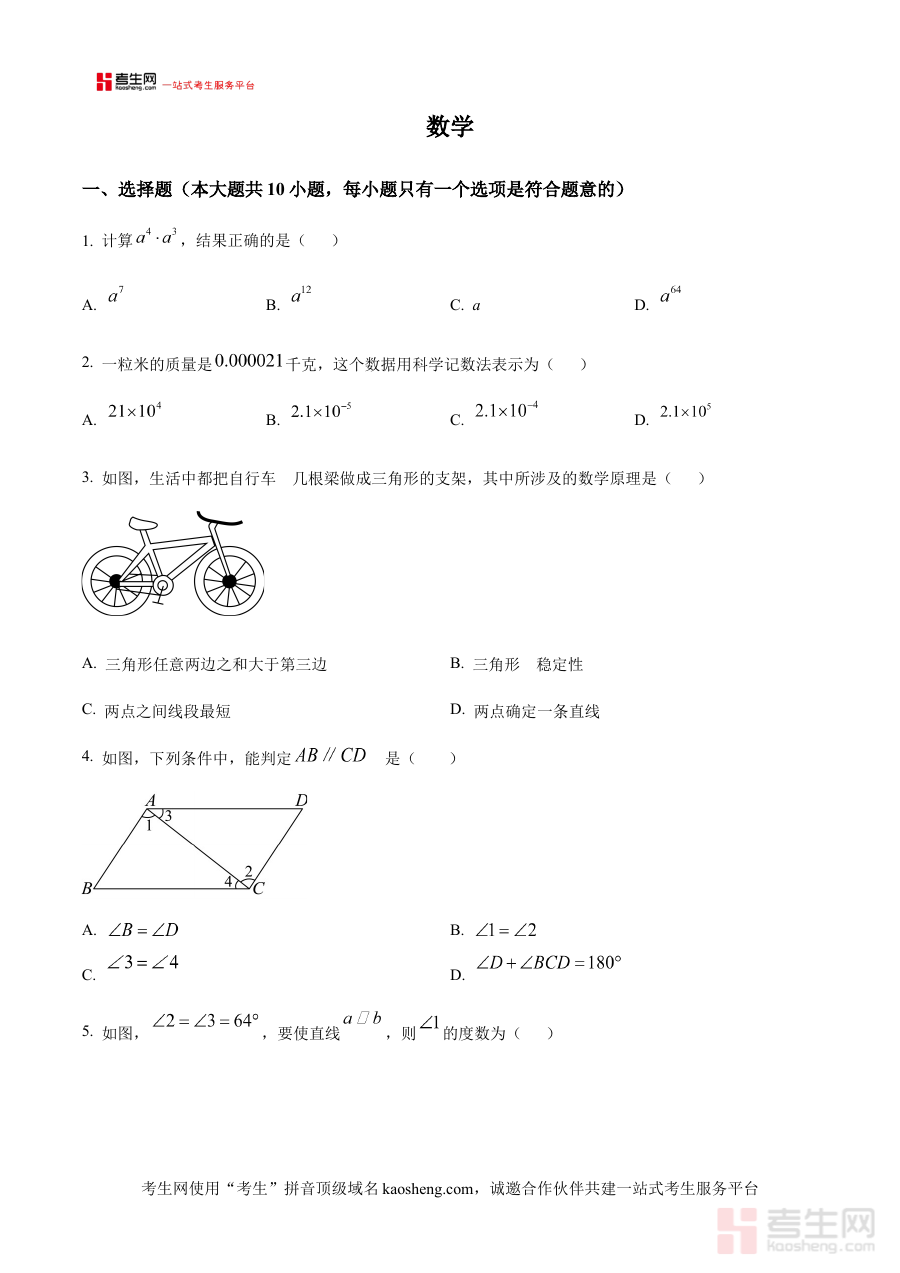《精品解析:陕西省西安市铁一中学2024-2025学年七年级下学期数学期中数学卷(原卷版)》是针对陕西省西安市铁一中学2024至2025学年七年级下学期数学期中考试设计的备考资料。该资料依托该校期中数学考试的实际命题背景,能够直观呈现该阶段考试的试卷结构与命题方向,为使用者提供与真实考试场景高度契合的参考载体,帮助其提前熟悉考试的整体框架与基本要求,为后续备考奠定基础。