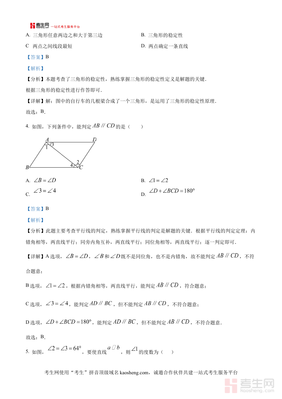 《精品解析:陕西省西安市铁一中学2024-2025学年七年级下学期数学期中数学卷(解析版)》是针对陕西省西安市铁一中学2024至2025学年七年级下学期数学期中考试编制的专业配套解析资料。该资料依托学校自身的教学体系与考试命题特点,紧密贴合该学年该阶段的数学教学进度与核心考查要求,能够为使用者提供与本次期中考试直接相关的内容参考,帮助使用者快速把握此次考试的核心方向与考查重点,是适配该特定考试场景的优质备考资源。