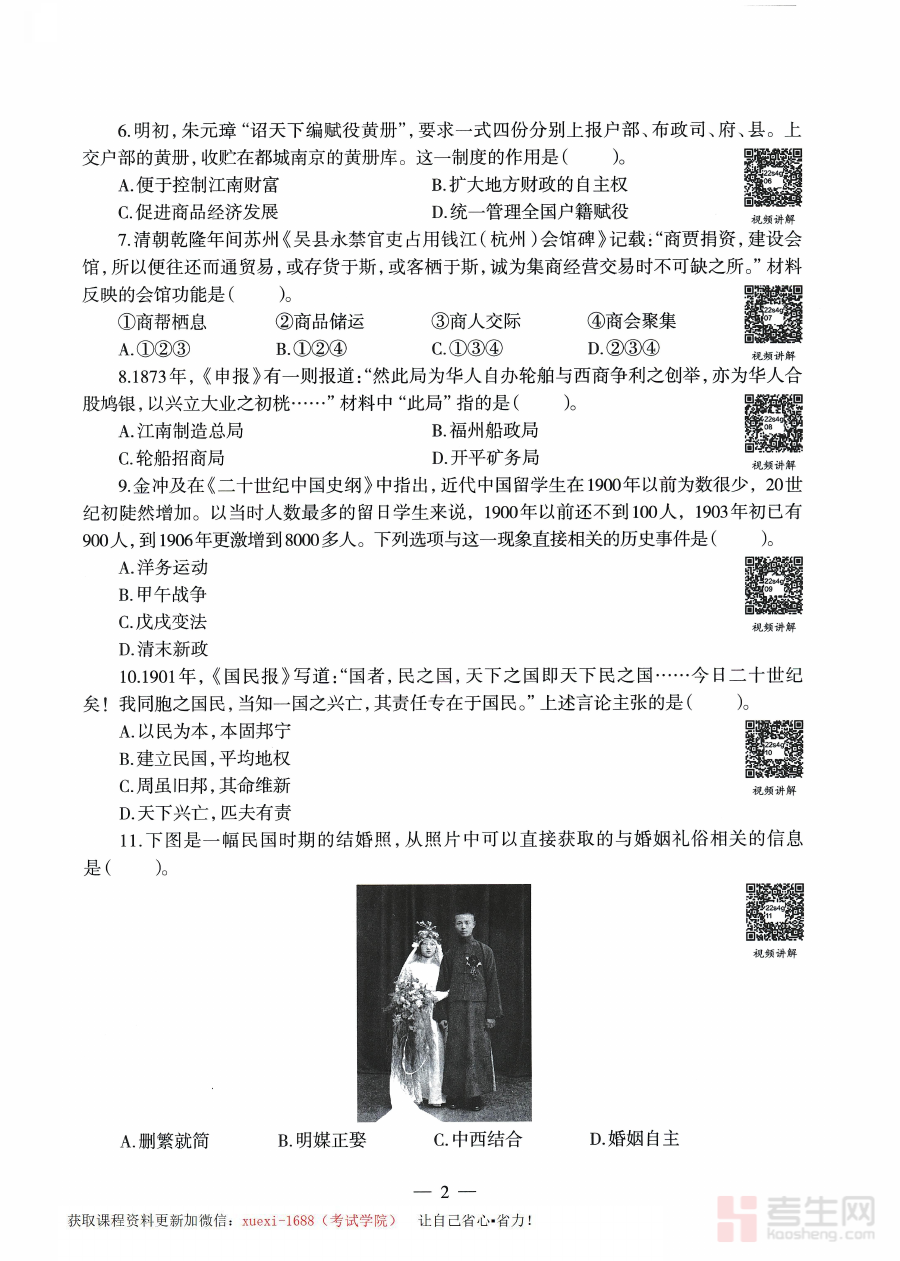 该资料可用于备考过程中的学情诊断,帮助考生清晰认知自身对初中历史学科相关知识的掌握情况;也能辅助制定科学的备考规划,让考生基于练习结果明确复习的重点模块与薄弱环节;同时还可作为阶段检测工具,有效检验阶段性复习的成效,为后续调整复习策略提供依据。