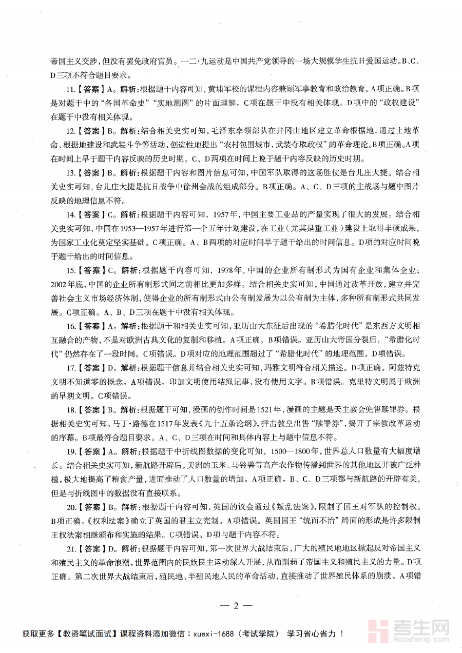 该资料主要用于辅助考生开展科学的备考规划与精准的学情诊断工作。考生可借助资料中的题解内容系统梳理自身在初中历史学科知识掌握上的薄弱环节,为后续复习制定更具针对性的计划;同时也可将其作为阶段检测的重要参考工具,通过对题解思路的分析调整复习节奏,确保备考过程的科学性与高效性。