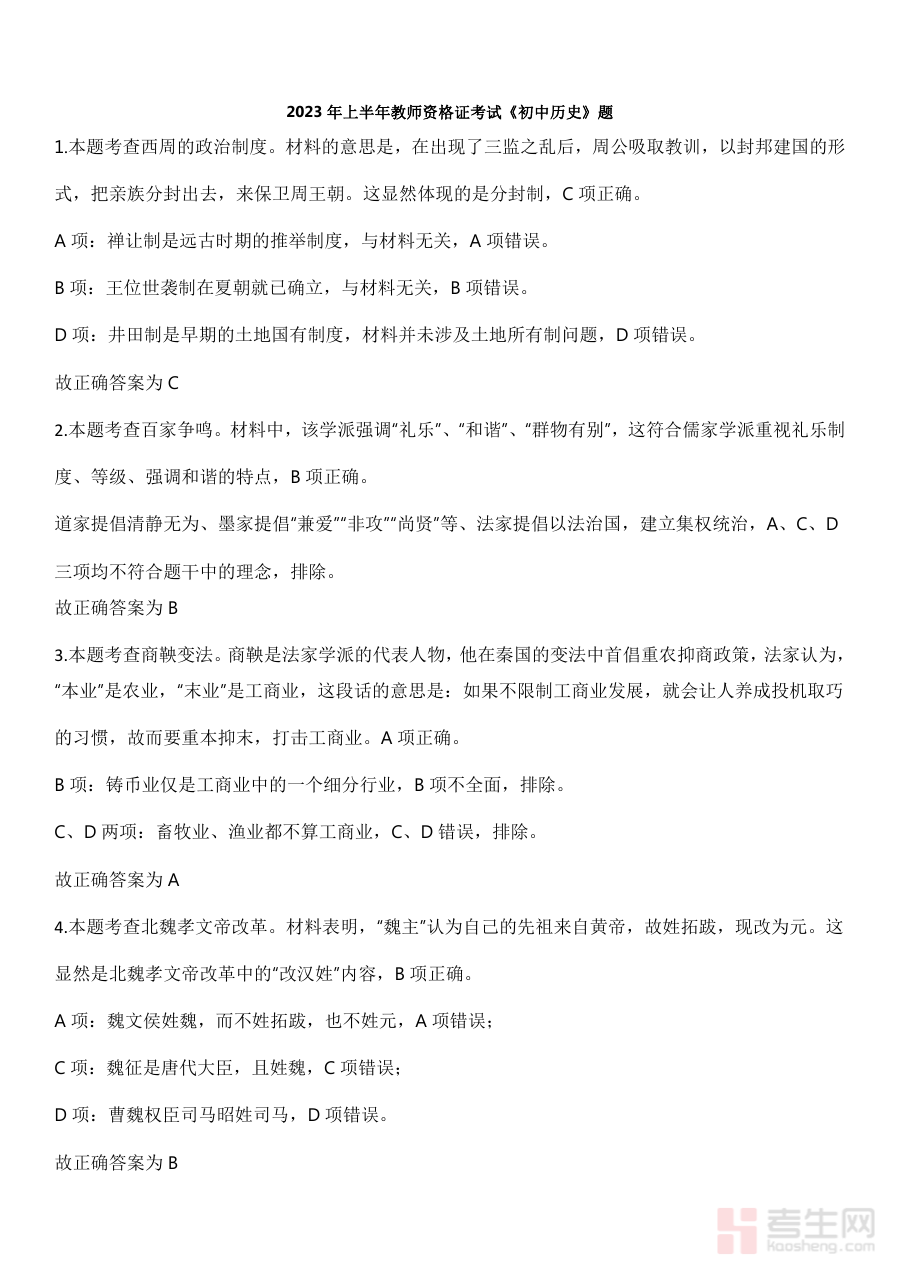 此资料主要适用于计划参加2023年上半年教师资格证初中历史学科考试的考生群体,通过提供针对性的解析内容,能够强化阶段检测的有效性,优化备考规划的科学性,进而提升考生备考的整体效率与质量,为其顺利通过考试提供有力支撑。